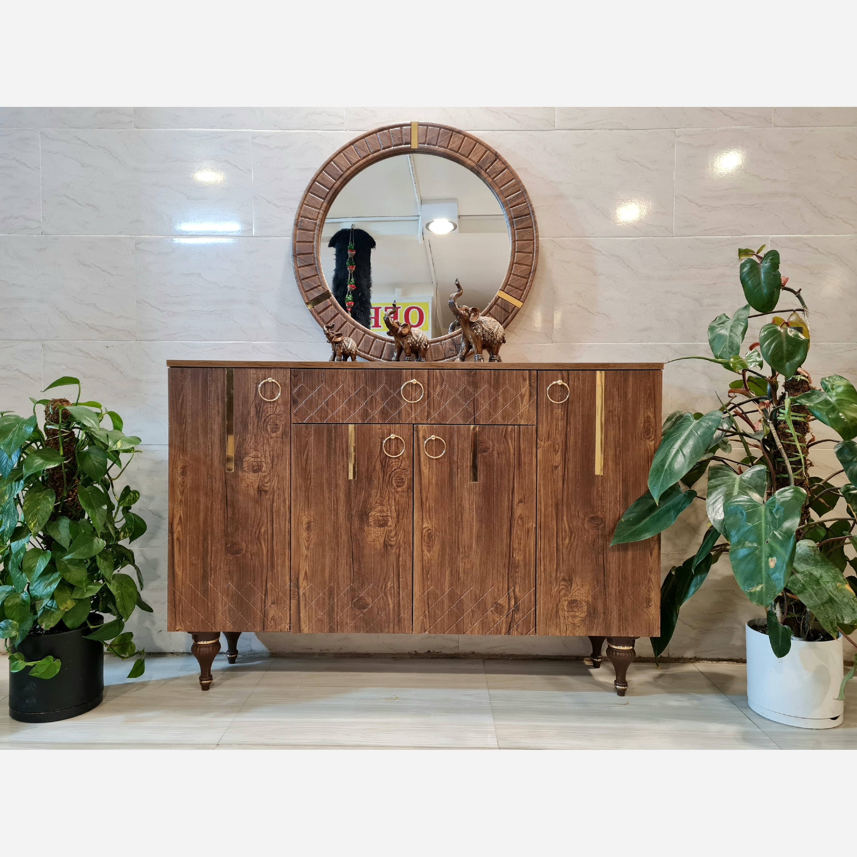 آینه و کنسول 4 در 1 کشو مدل رومی در ها وکیوم FRP شرکتی تهران هزینه ارسال با مشتری به کمترین قیمت رنگ قهوه ای مبلمونسرا مدل 220316