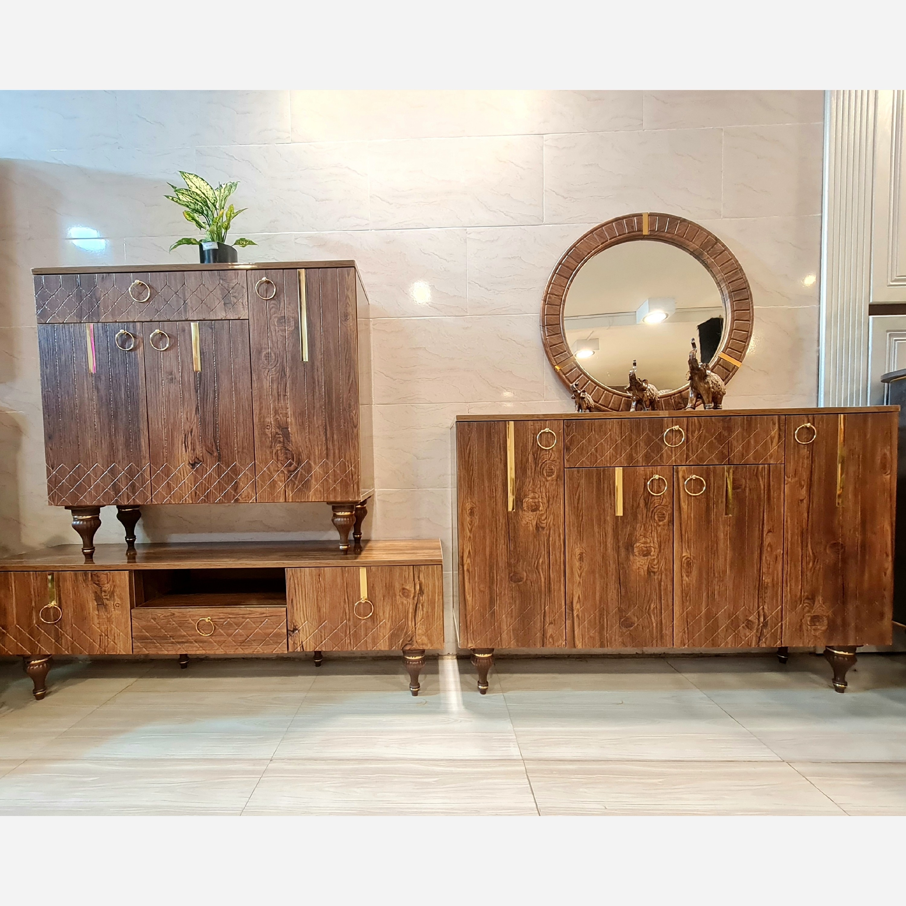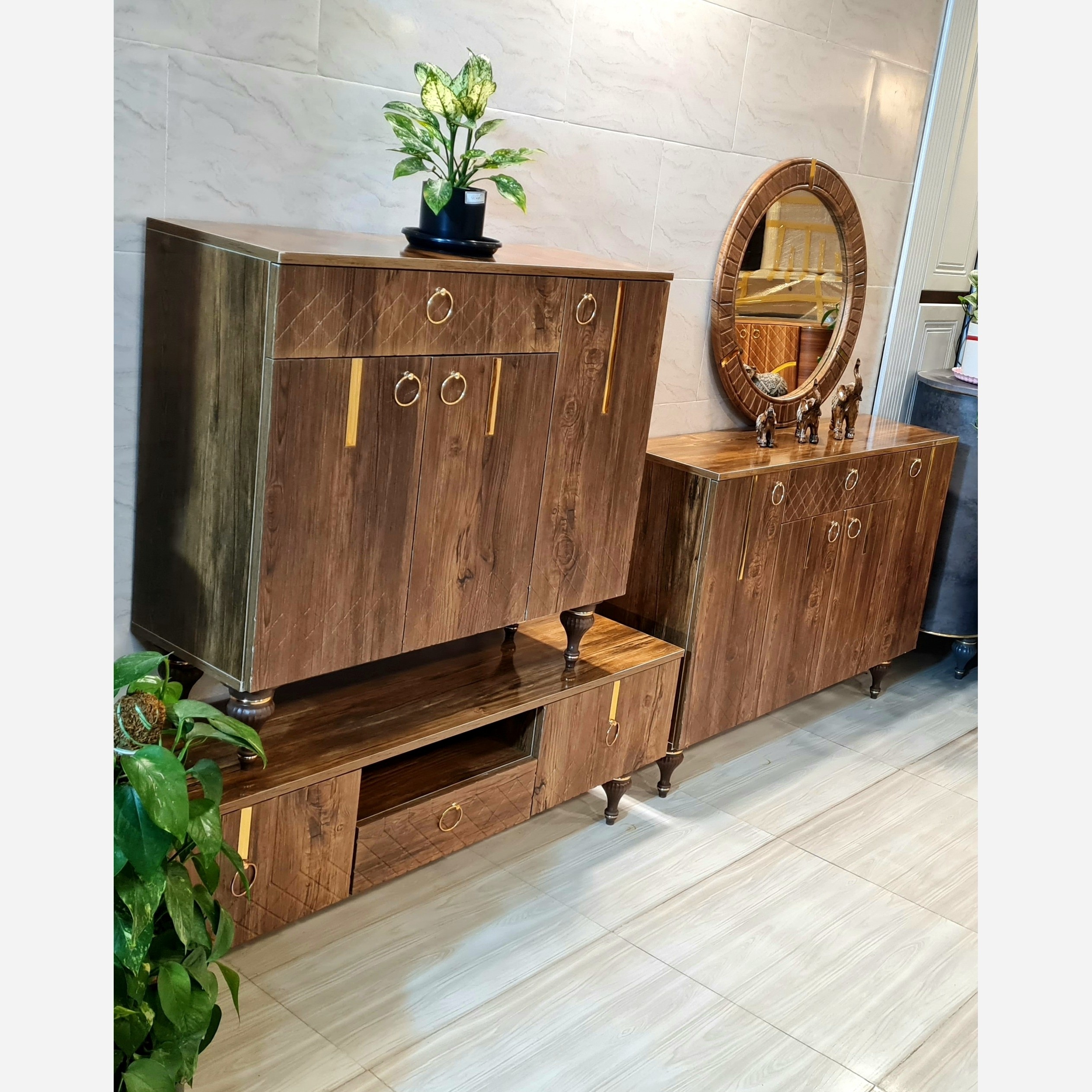 آینه و کنسول میز تلویزیون جاکفشی مدل رومی در وکیوم FRP تهران هزینه ارسال با مشتری به کمترین قیمت رنگ قهوه ای مبلمونسرا مدل 229754