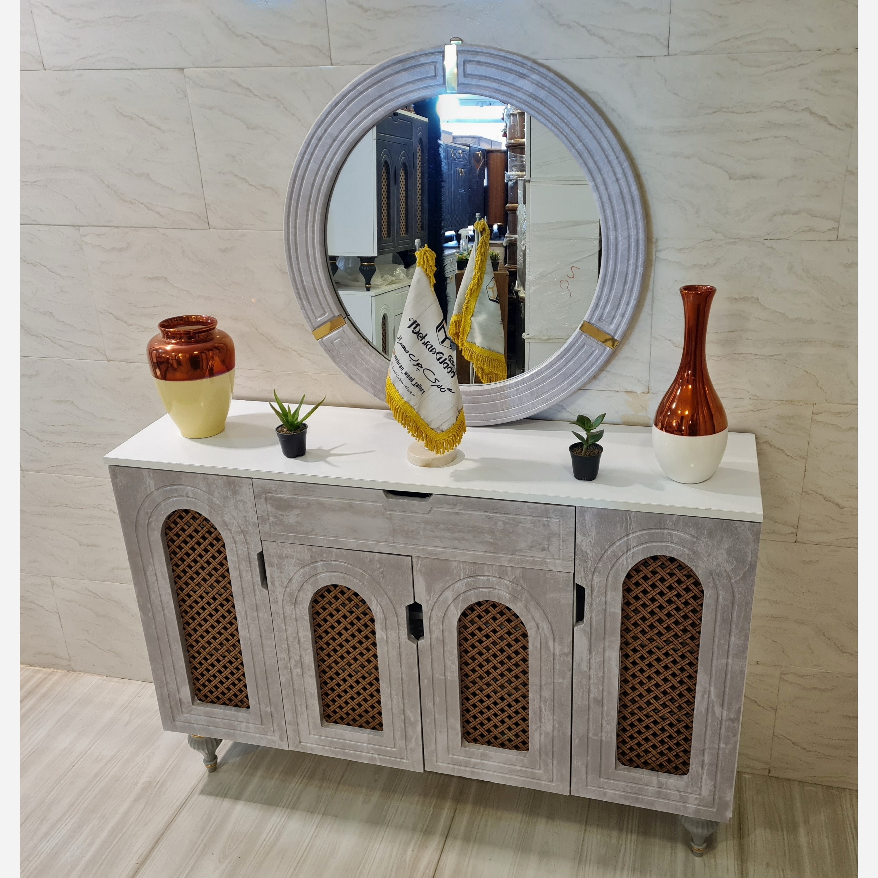 آینه و کنسول مدل حصیری دارای رنگبندی در وکیوم FRP شرکتی تهران هزینه ارسال با مشتری به کمترین قیمت آیینه آئینه مبلمونسرا مدل 218241