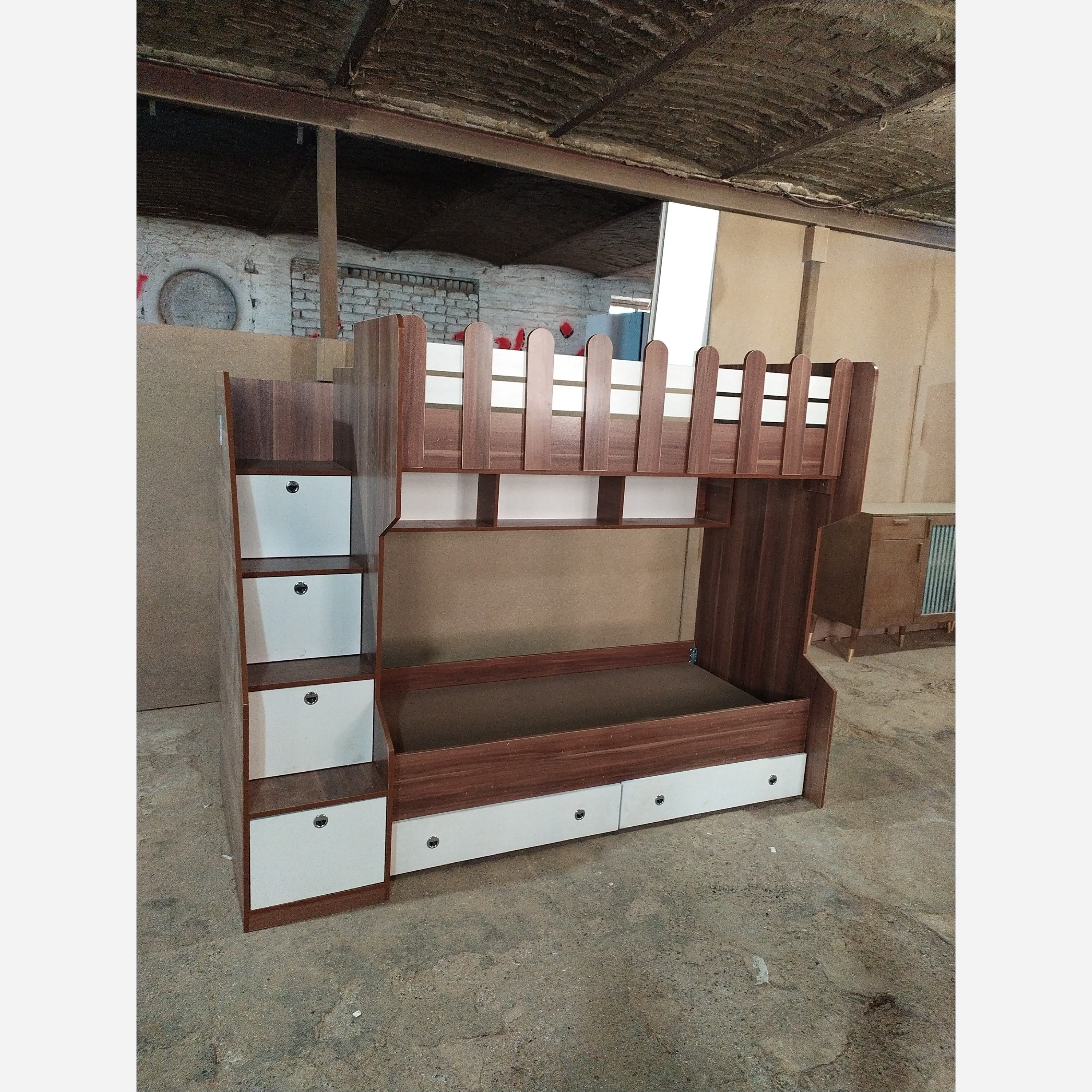 تخت دوطبقه پردیس یکنفره هزینه بسته بندی و حمل به عهده ی مشتری عزیز میباشد کامل ملامینه پویا پله ها به صورت باکس بزرگ و جادار کتابخانه زیر تخت بالا دوکشو زیر تخت،به همراه کفی تخت ابعاد کل250×95 فضای تشک90×200