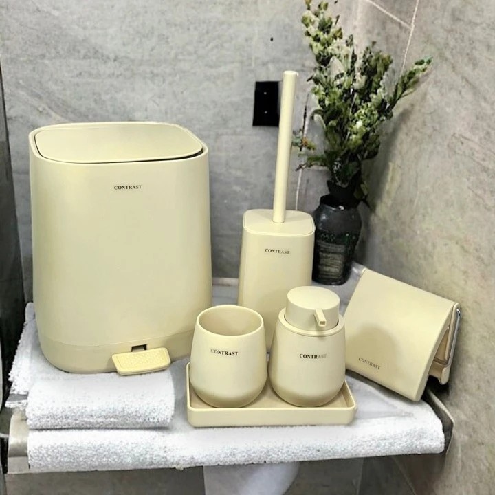 6 پارچه شامل جاصابون،جامسواک، جامایع، جادستمال، سطل و فرچه