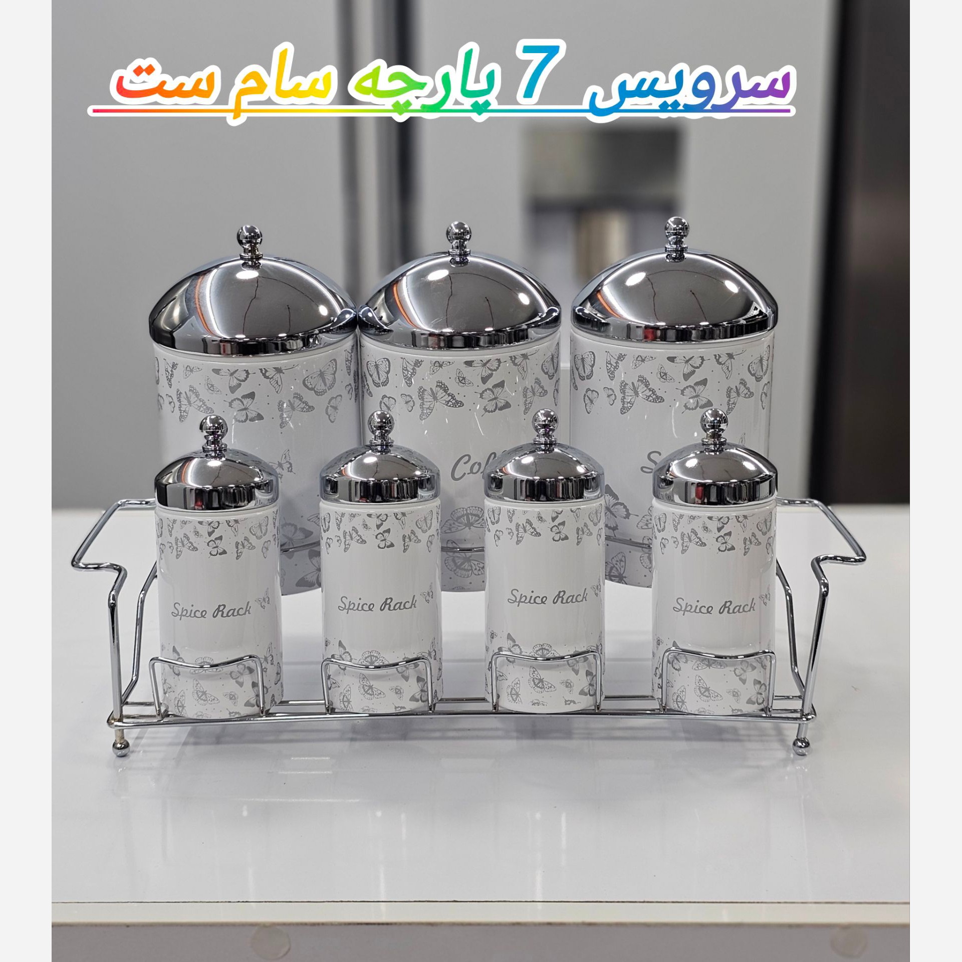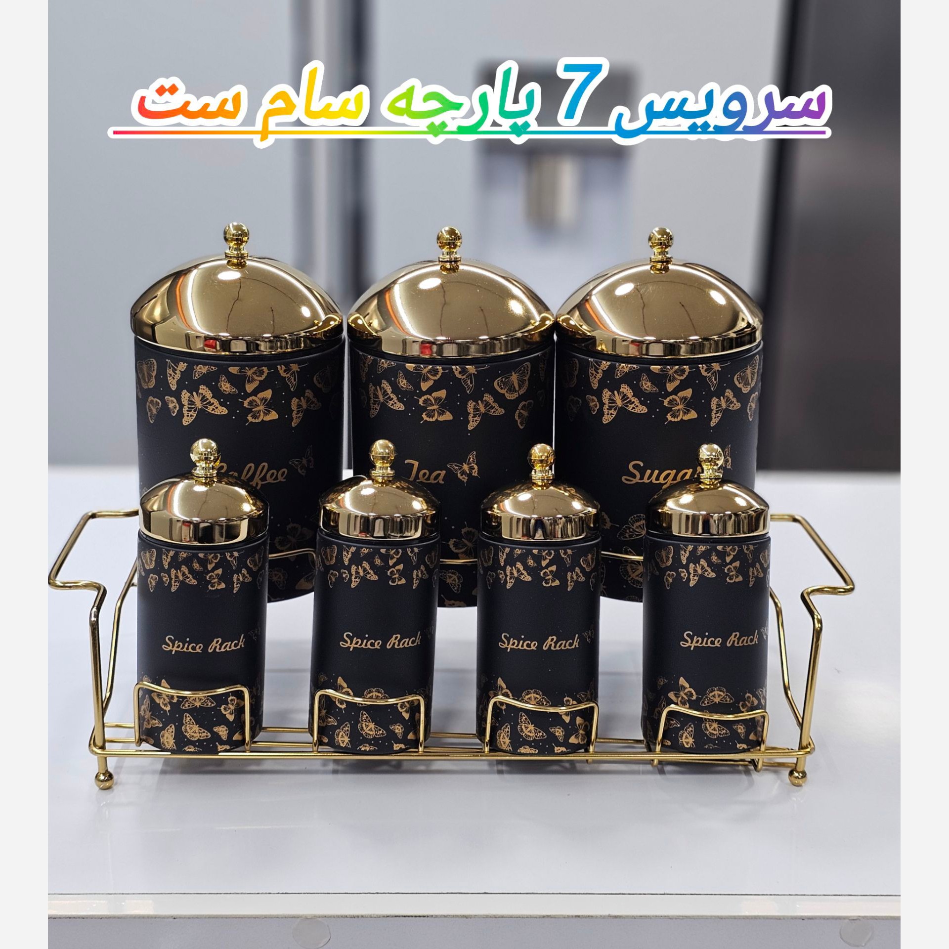 سرویس 8 پارچه سام ست جنس فلز درجه یک مشکی و سفید درب طلای کیفیت فوق العاده عالی قیمت عمده 👈 1/850