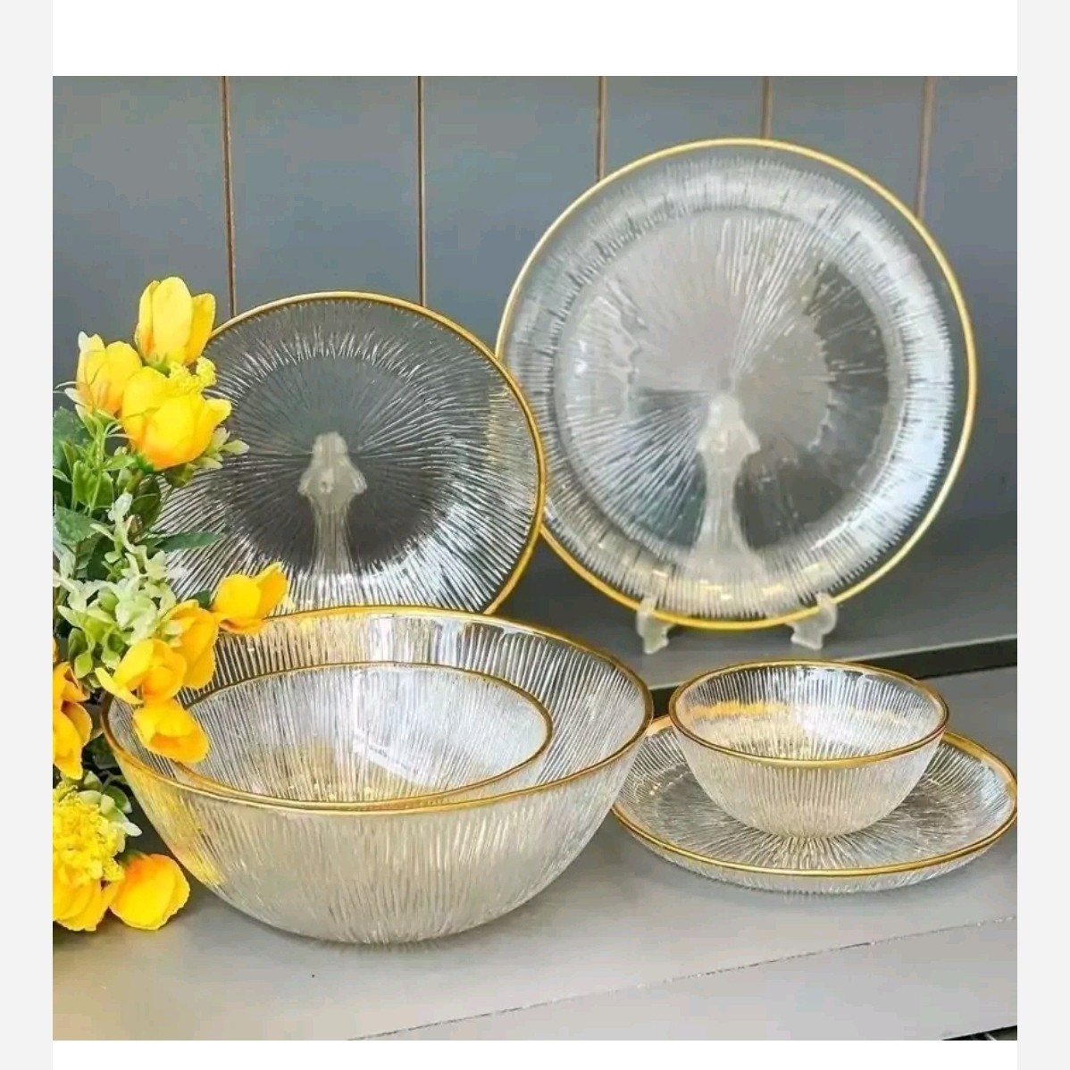 سرویس 33 پارچه لب طلا سولو ✅️جنس شیشه شفاف ✅️1دست پلوخوری ✅️1 دست خورشت خوری ✅️1دست پیش دستی ✅️1دست پیاله ماست خوری ✅️1دست آبگوشت خوری ✅️1عدد سالادخوری ✅️2عدد دیس گرد ✅️بسیار شیک و کیفیت درجه یک به دلیل حساسیت محصول ارسال با تیباکس می باشد.