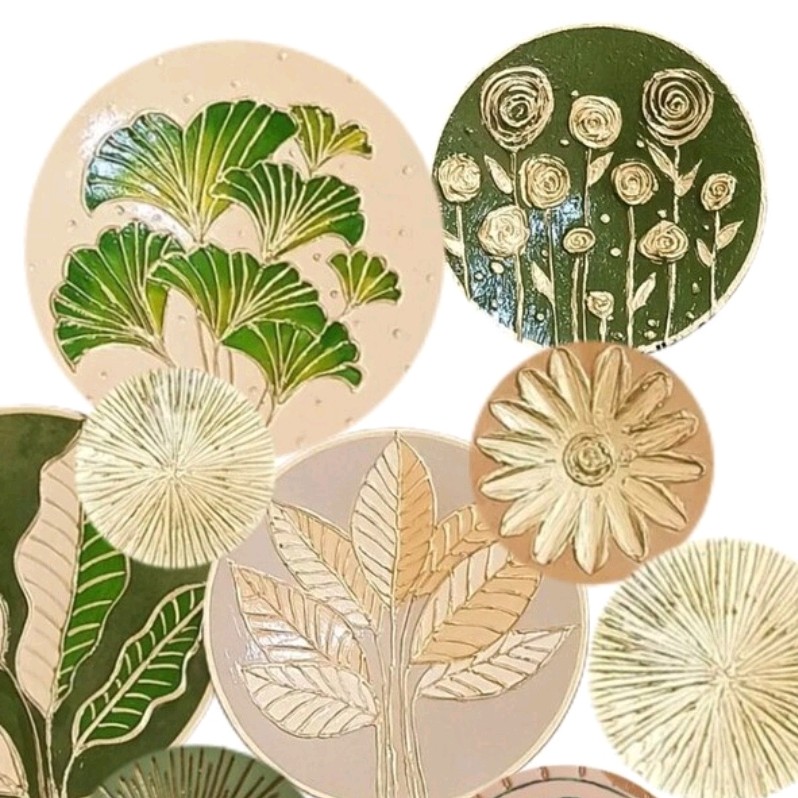 ست دیوارکوب برجسته 🌾 طرح مدرن 🌼ست دیوارکوب 9تایی 🌱 تماما نقاشی شده 🔸 جنس سفال ☘️رنگ ضدآب خارجی 🔶هنر دست 🍃دارای گیره برای آویز 🌻براق 🪴قابل سفارش با اندازه و رنگ دلخواه 🌿اندازه : 25سانت سه تا 20 یه 15 سانت سه تا 12 سانت