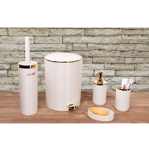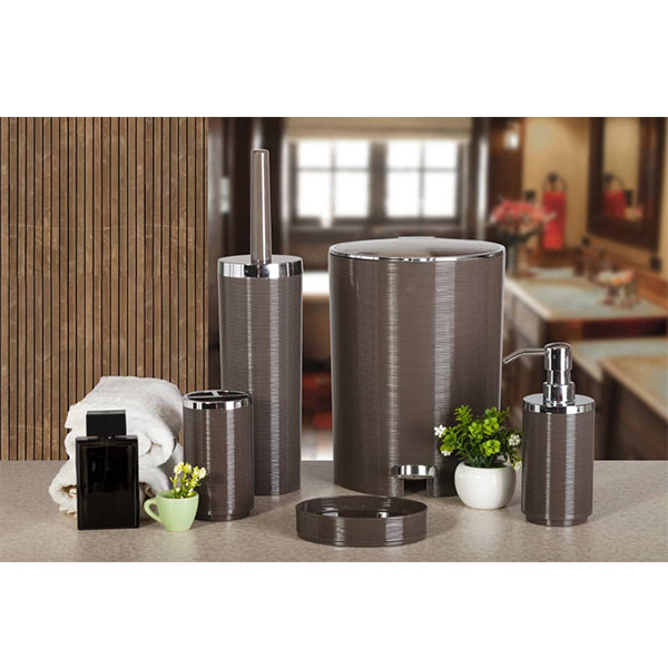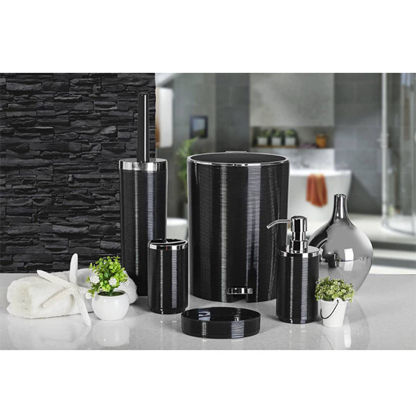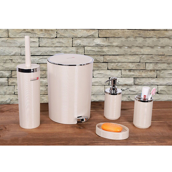 « ست سرویس بهداشتی ۵ پارچه خط ریز کنتراست» شامل سطل ،برس،جامایع،جامسواک و جاصابون میباشد.