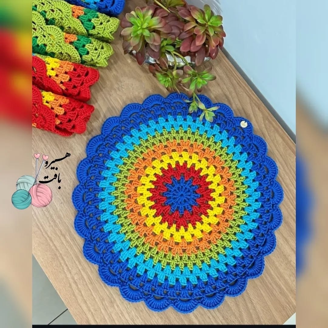 بافته شده با نخ ترک رنگبندی به دلخواه شما اگه اندازه خاصی مد نظرته کافیه بهم بگی😌✨