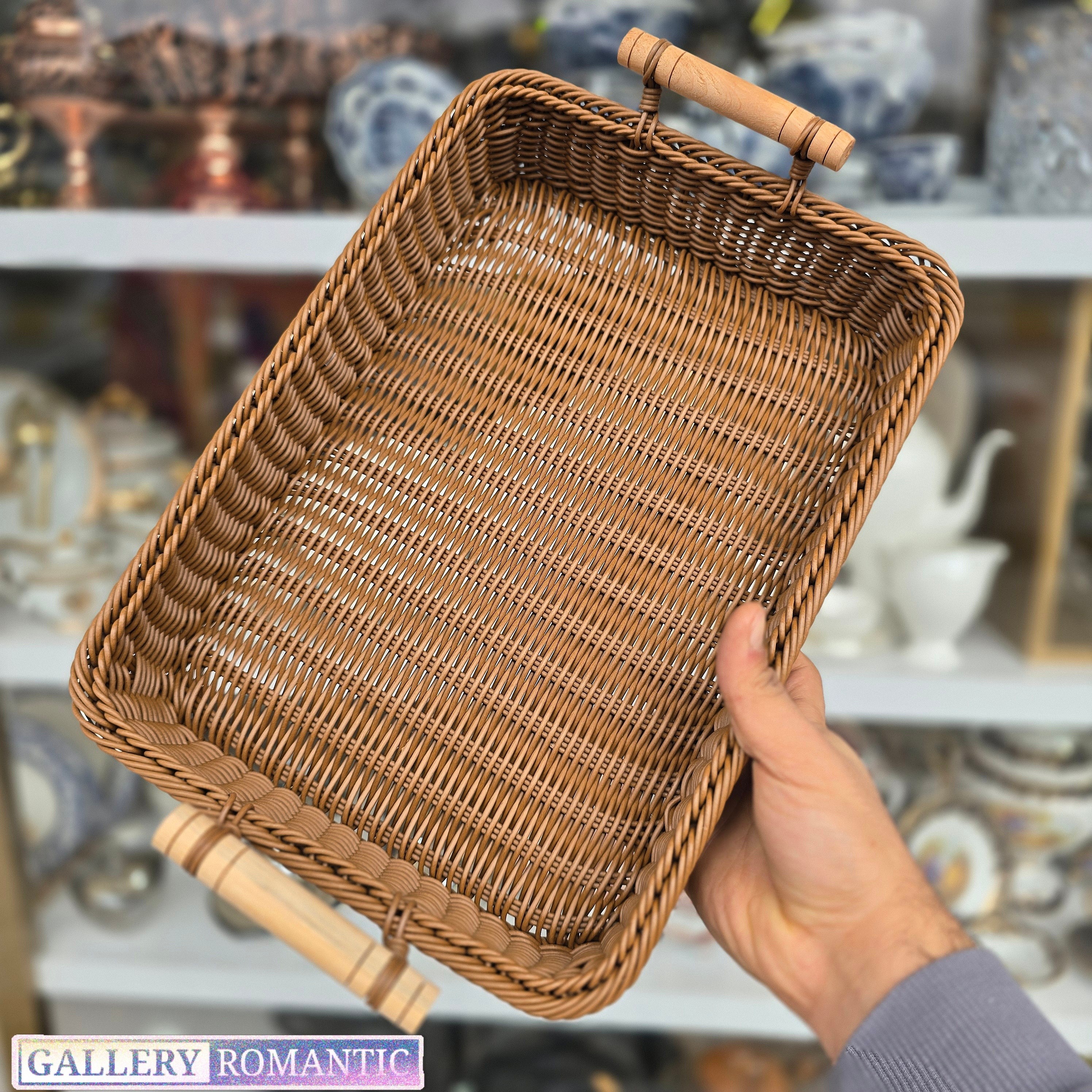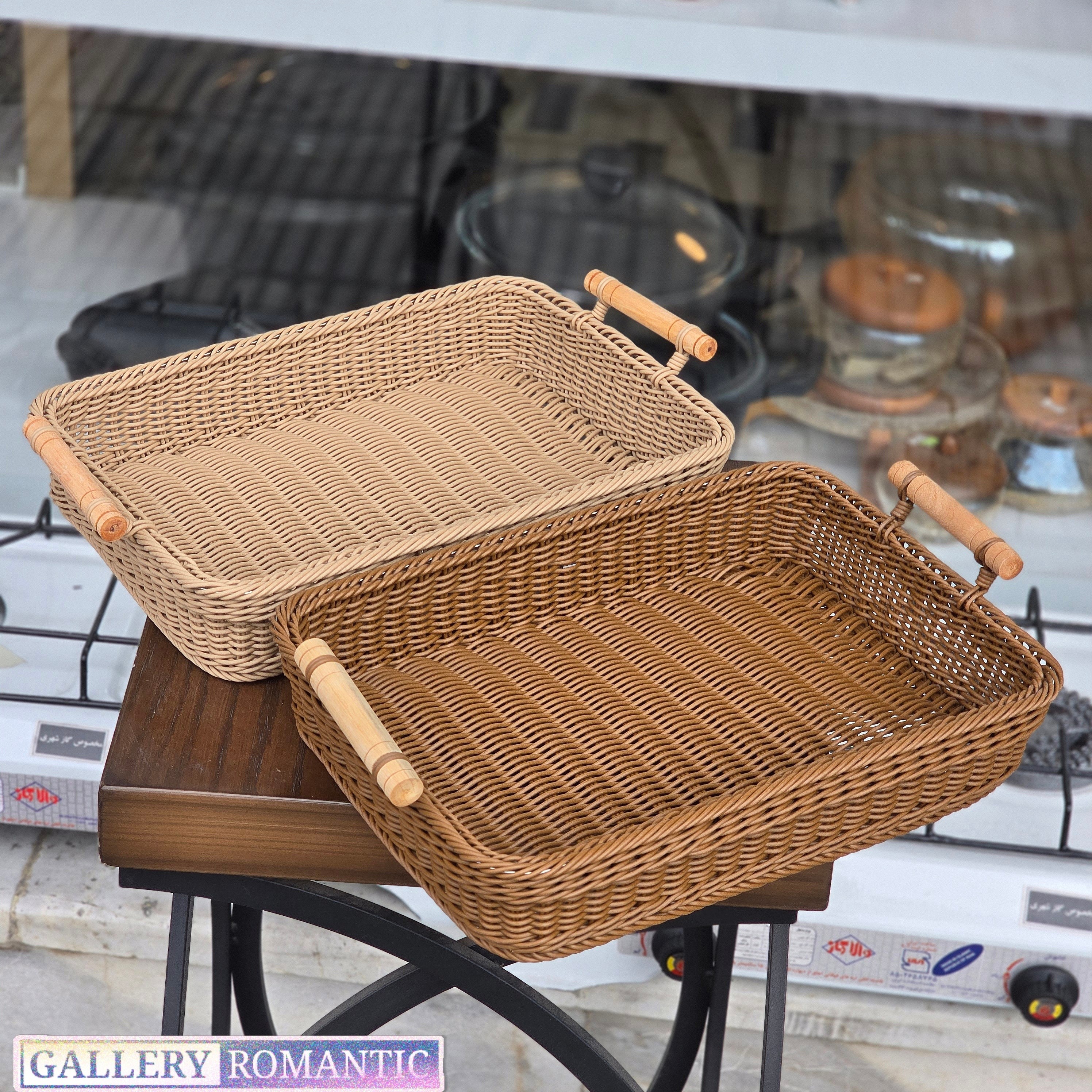 سبد سبزی-میوه-نان پلاستیکی بافت دسته چوبی مستطیل خارجی کد 1111 طول 36 عرض 26 مبلمونسرا مدل 295068