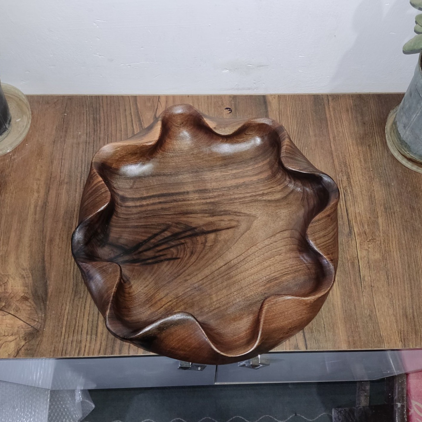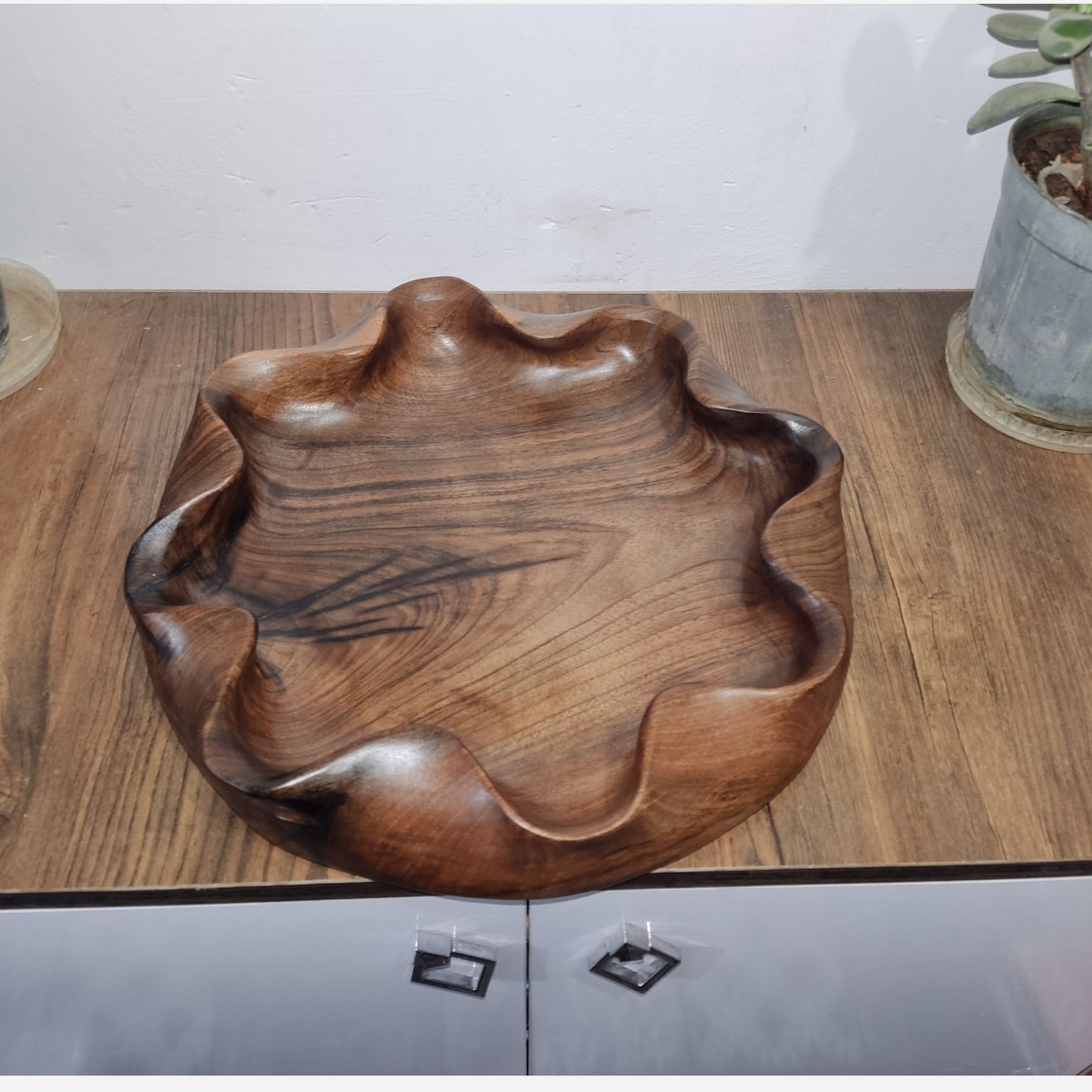 ارسال رایگان.ظرف چوبی دفرمه.میوه خوری چوبی دست ساز گرد.ظرف چوبی دالبری مبلمونسرا مدل 278471