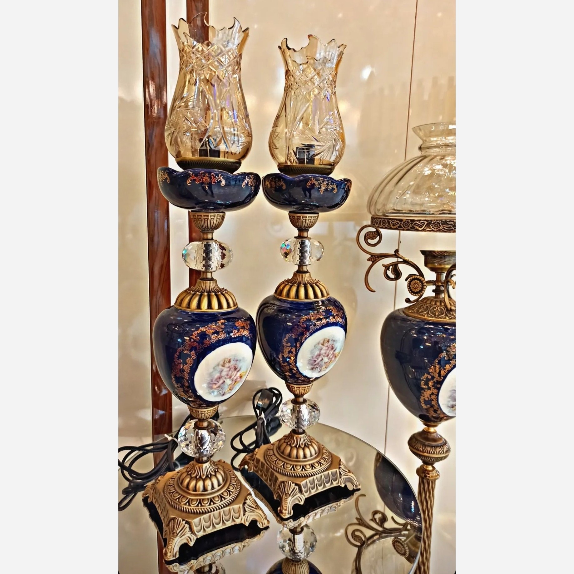 آباژور لمپا چینی برنز چراغ نفتی گردسوز مبلمونسرا مدل 234532
