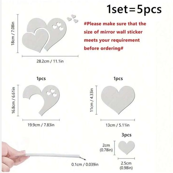 5 عدد آینهی سهبعدی شکل قلب با طرح اکریلیک، زیبایی و جذابیت بیمانندی را به دکوراسیون خانه شما میآورد. این آینهها با استفاده از مواد اکریلیک با کیفیت بالا ساخته شدهاند و به راحتی به دیوارها و سطوح دیگری مانند شیشه و آینهها قابل نصب هستند. با افزودن این آینهها به فضا، میتوانید نور و عمق بیشتری به اتاقهای شما اضافه کنید و اتاقها را بزرگتر و دلپذیرتر نمایید.