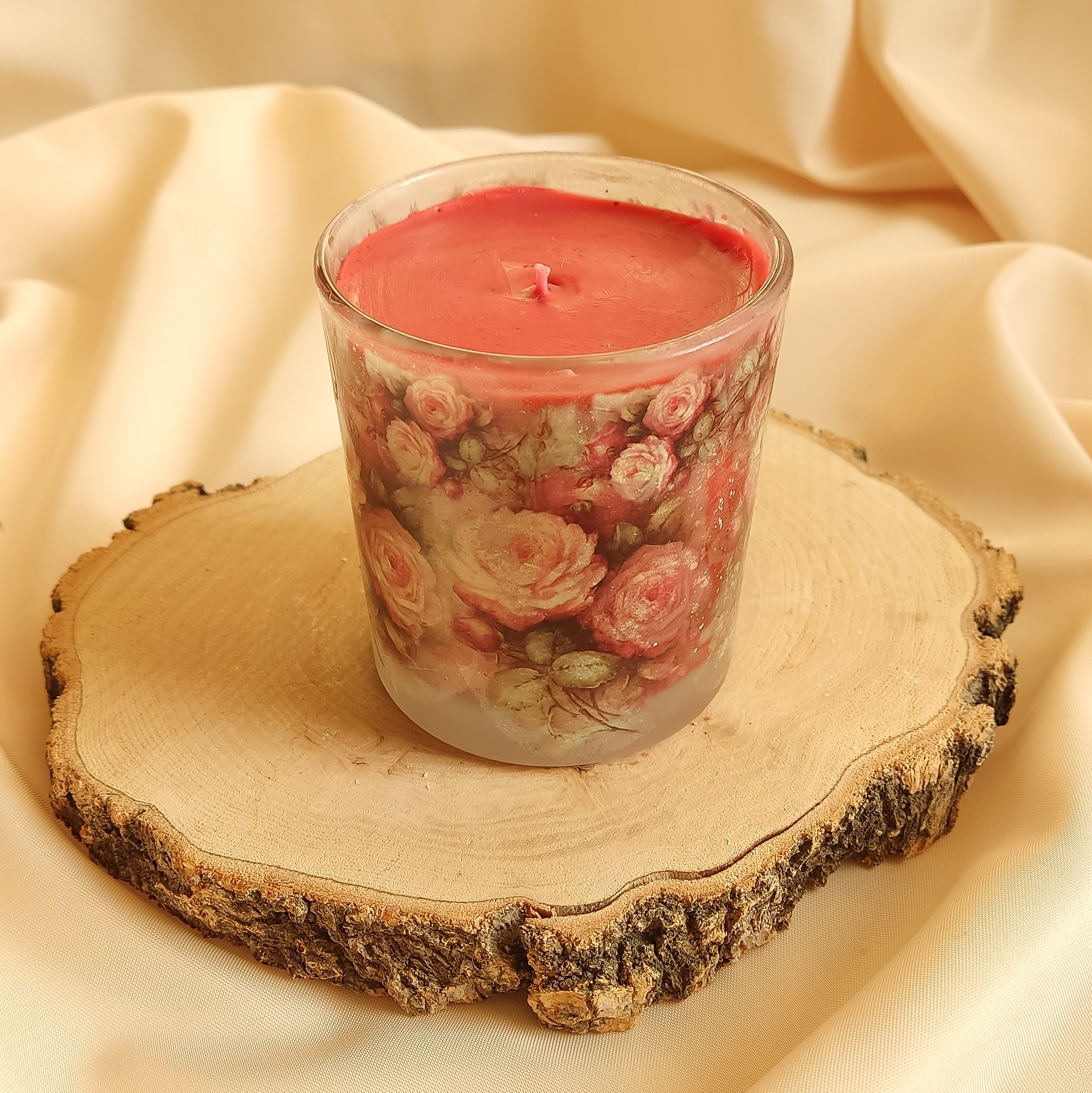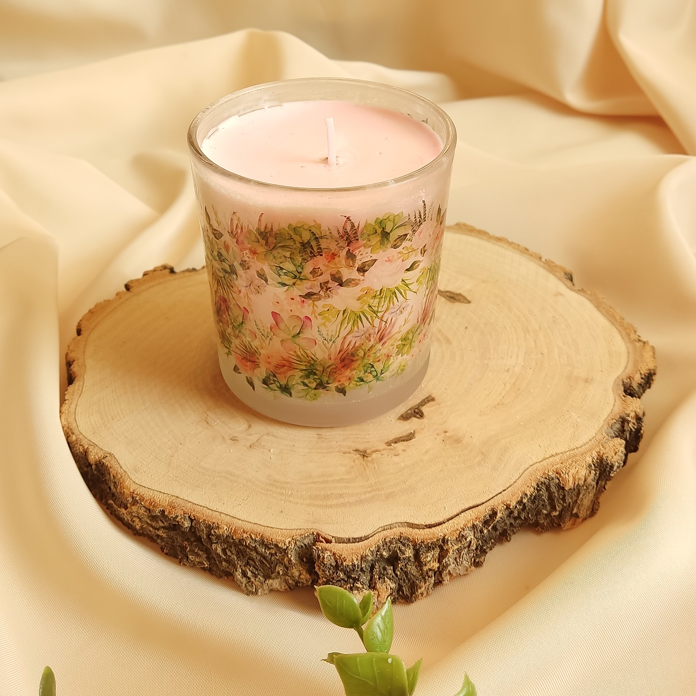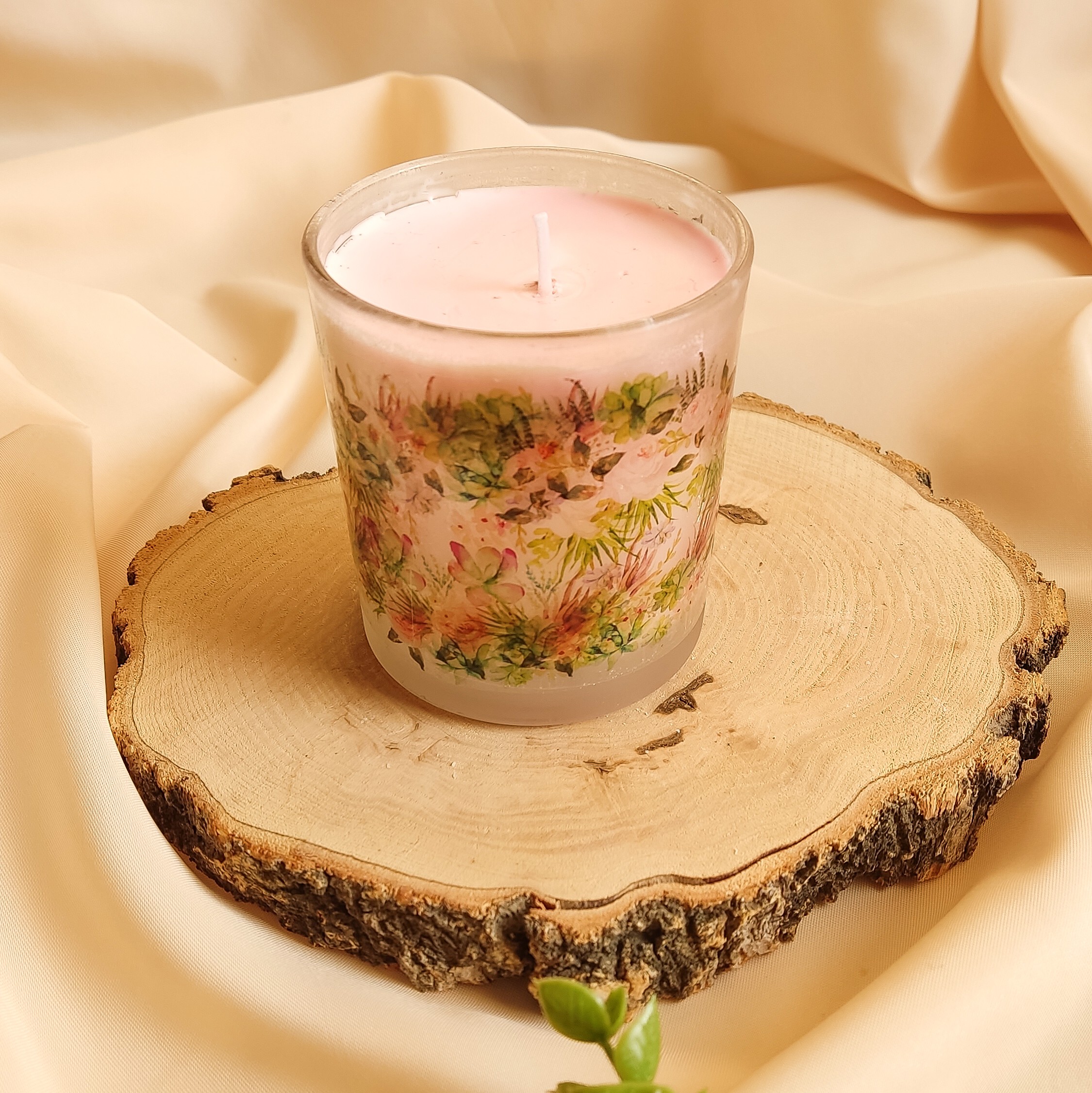شمع رنگی وعطری لیوانی گلدار متوسط مبلمونسرا مدل 280893