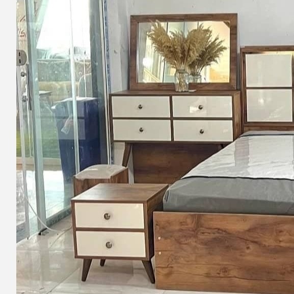قیمت تخت دو نفره با کفی 6.900.000 سرویس خواب روکش ملامینه دقیقا مشابه عکس سایز تخت دو نفره استاندارد 160*200 شامل: میز آرایش و آینه و صندلی یک عدد پاتختی کفی تخت پایه چوبی و ورق کیفیت عالی پارس