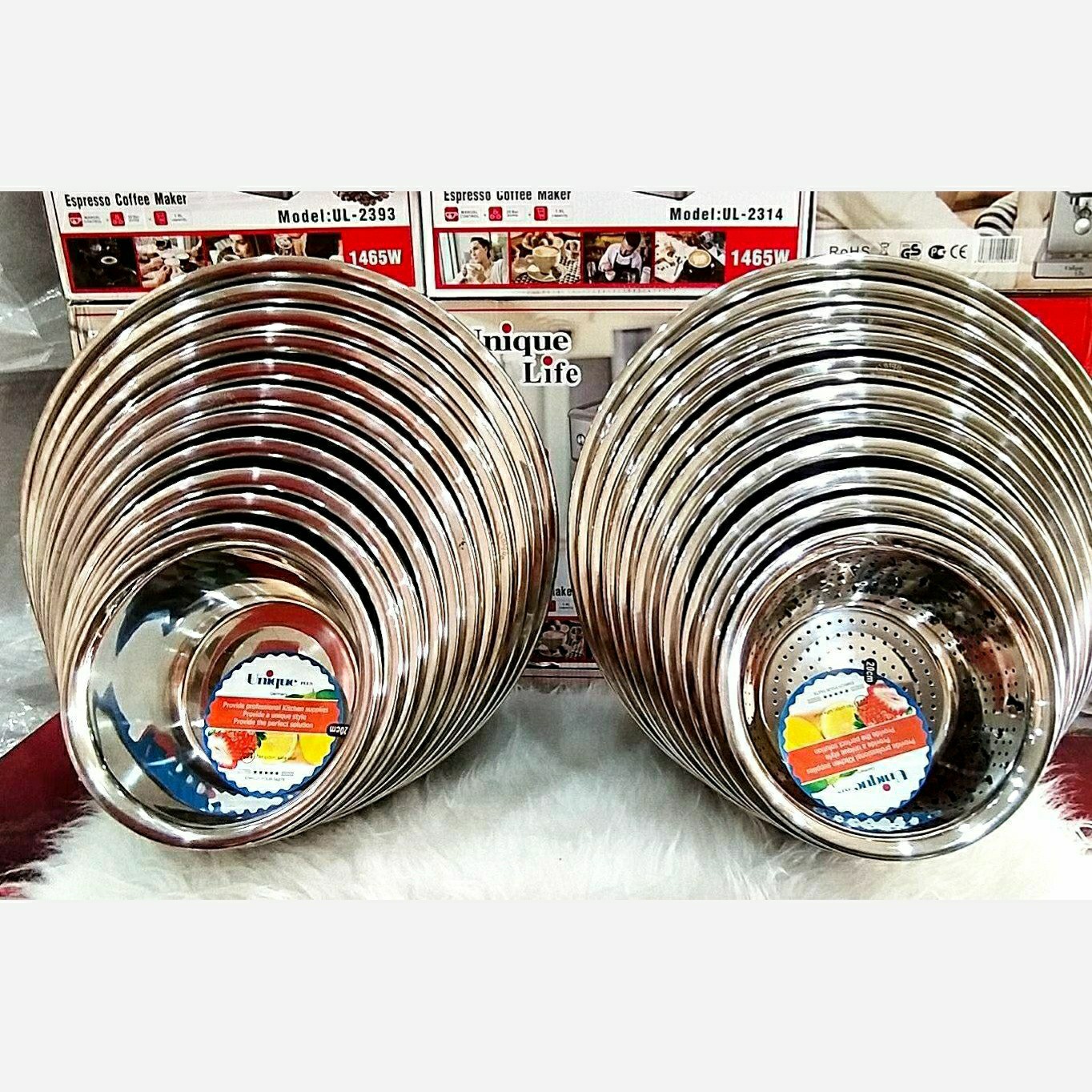 ❤️سرویس آبکش و لگن استیل یونیک پلاس حک شده❤️ ✔️برند:یونیک ✔️کشور سازنده:چین تحت لیسانس انگلیس ✔️جنس:استیل ضد زنگ ✔️قابلیت شستشو:دستی,ماشین ظرفشویی ✔️رنگ:استیل ✔️سایر ویژگی ها:کاملا ضد زنگ ✔️بدون پایه و دسته ✔️آهنربا نگیر ✔️ ضد زنگ ✔️حک شدهUnique plus يکي از وسايل کاربردی و ضروري آشپزخانه است که براي شستشو و آبکش کردن انواع سبزيجات، ميوه، برنج و ماکارانی مورد استفاده قرار می گیرد. لگن و آبکش یونیک پلاس از استیل بسیار باکیفیت و مقاومی ساخته شده است. لگن یونیک را میتوان برای ذخیره سازی مواد غذایی در یخچال استفاده کرد ، سایزهای کوچک آن برای طعم دار کردن انواع مرغ و جوجه بسیار مناسب است ، و به هیچ عنوان طعم و یا بوی ظرف به مواد غذایی سرایت نمیکند ، درست برعکس لگن های پلاستیکی بیکیفیت که باعث بوگرفتن مواد غذایی میشود.