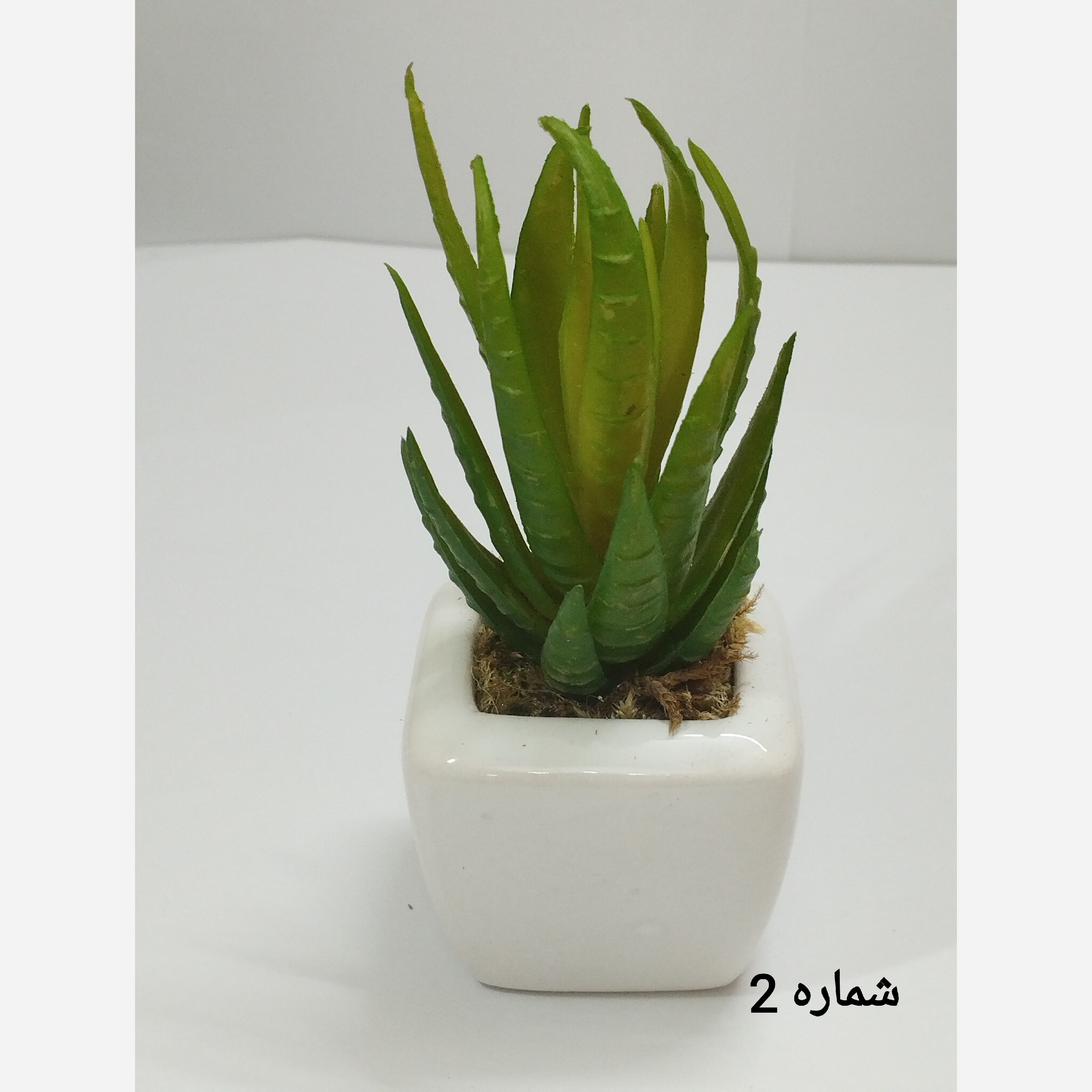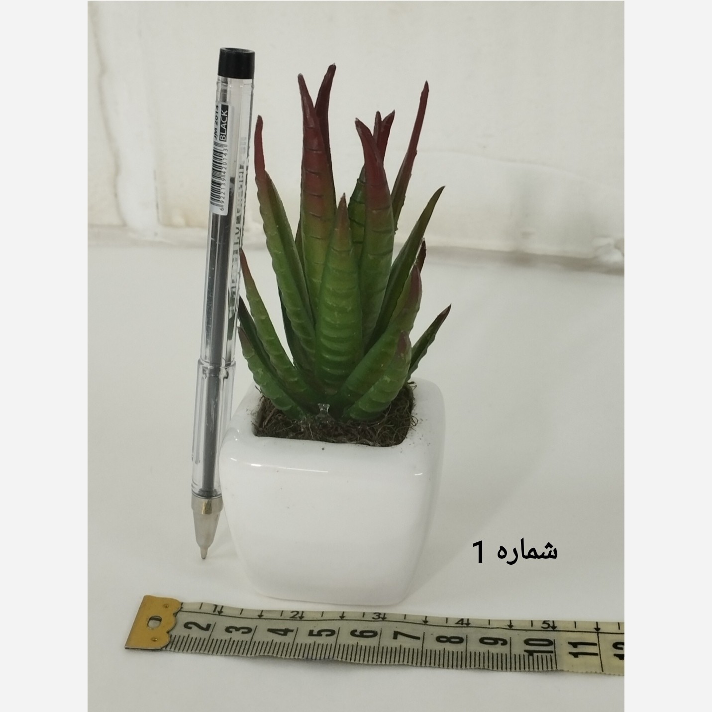 گلدان چهارگوش سفالی لعابدار و کاکتوس پلاستیکی وارداتی و قابل شستشو