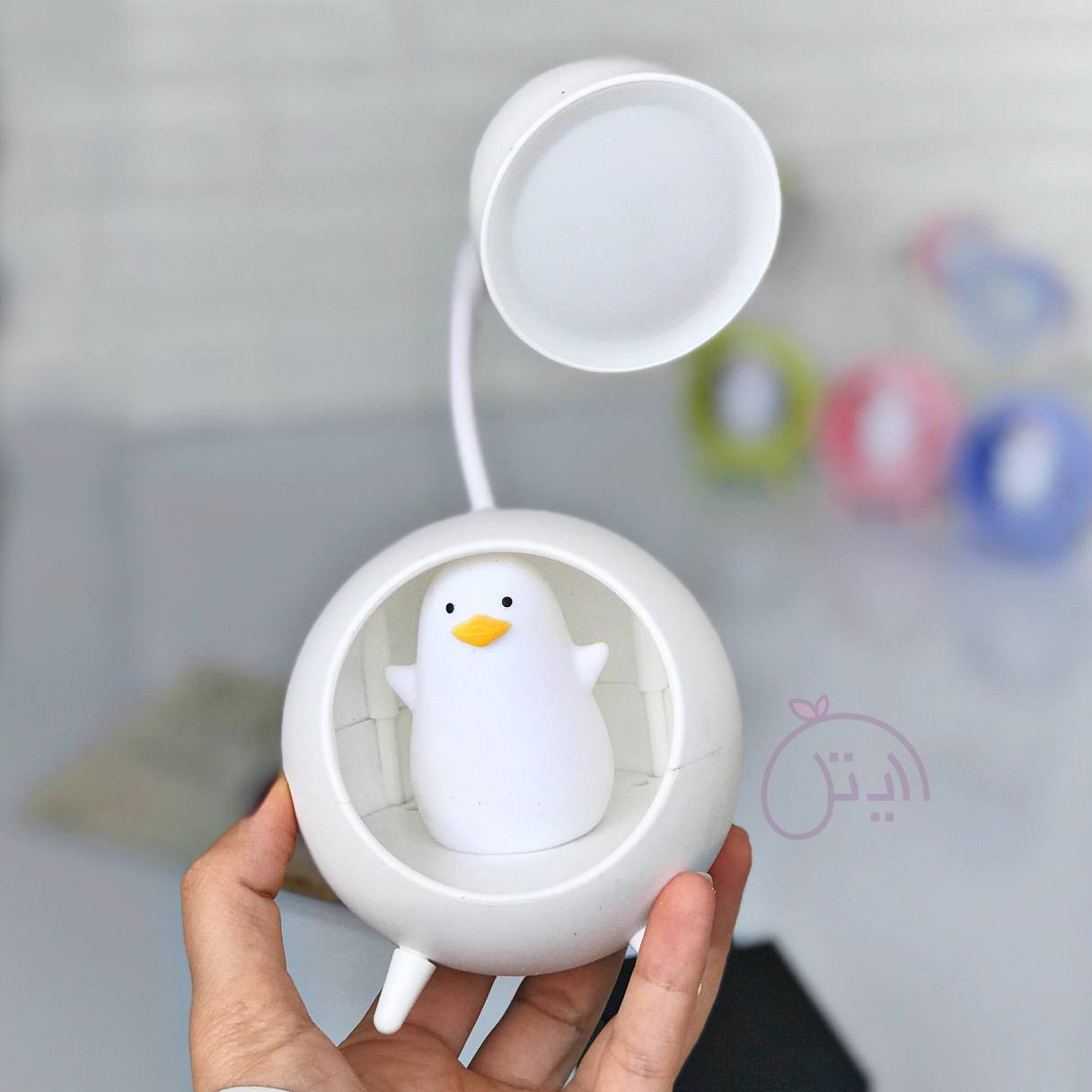محصول دارای یک نور سفید بزرگ برای مطالعه یک نور رنگی برای روشن ماندن و خواب طرح اردک جذاب کابل شارژ داره
