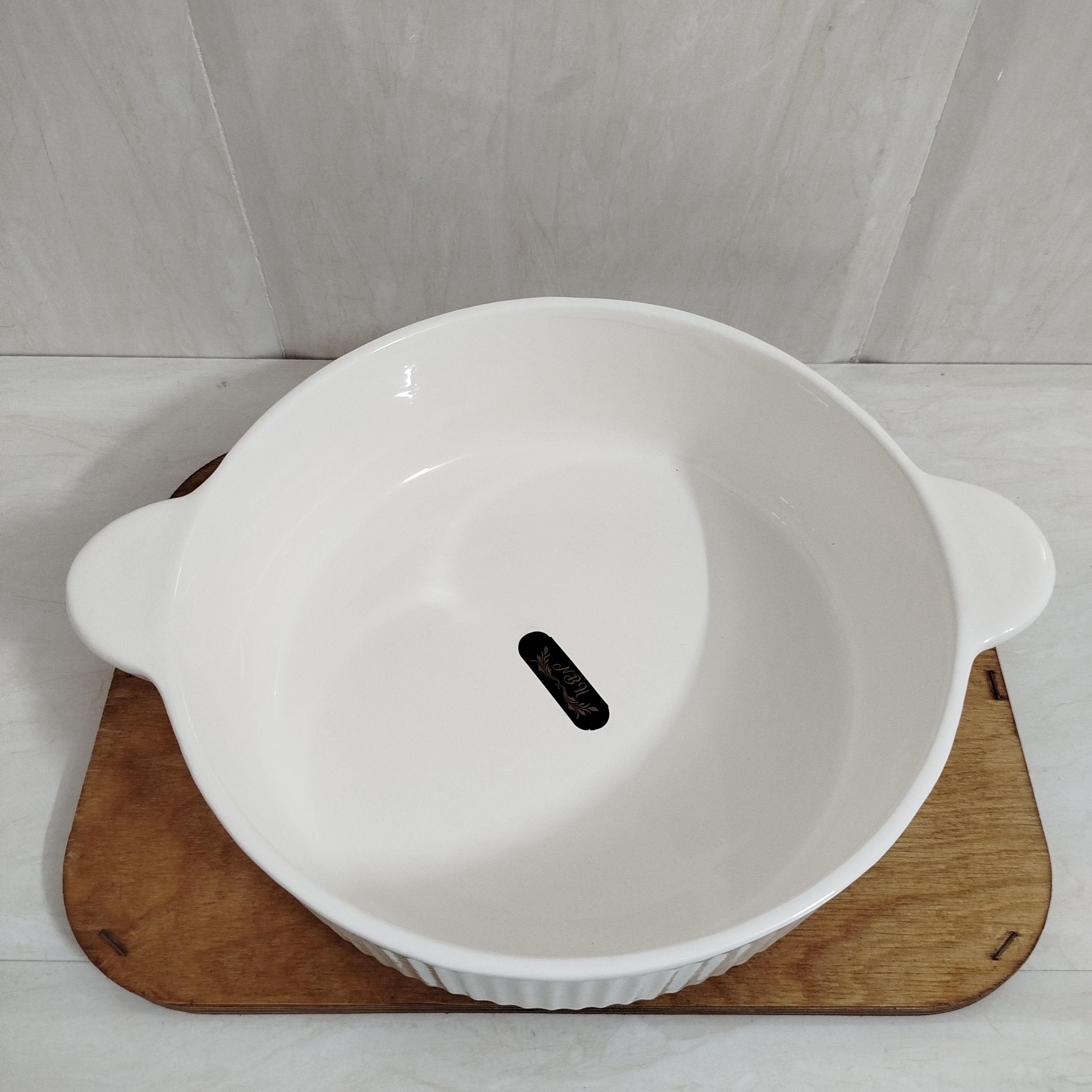 ظرف مرغ خوری گرد وانسلی قطر 30 سانت سرامیکی سفید ابعاد 33 سانتی متر در ارتفاع 8.5 سانت وزن 1450 گرم مناسب سرو مرغ و سالاد و .... مناسب برای پذیرایی و رستوران و ...