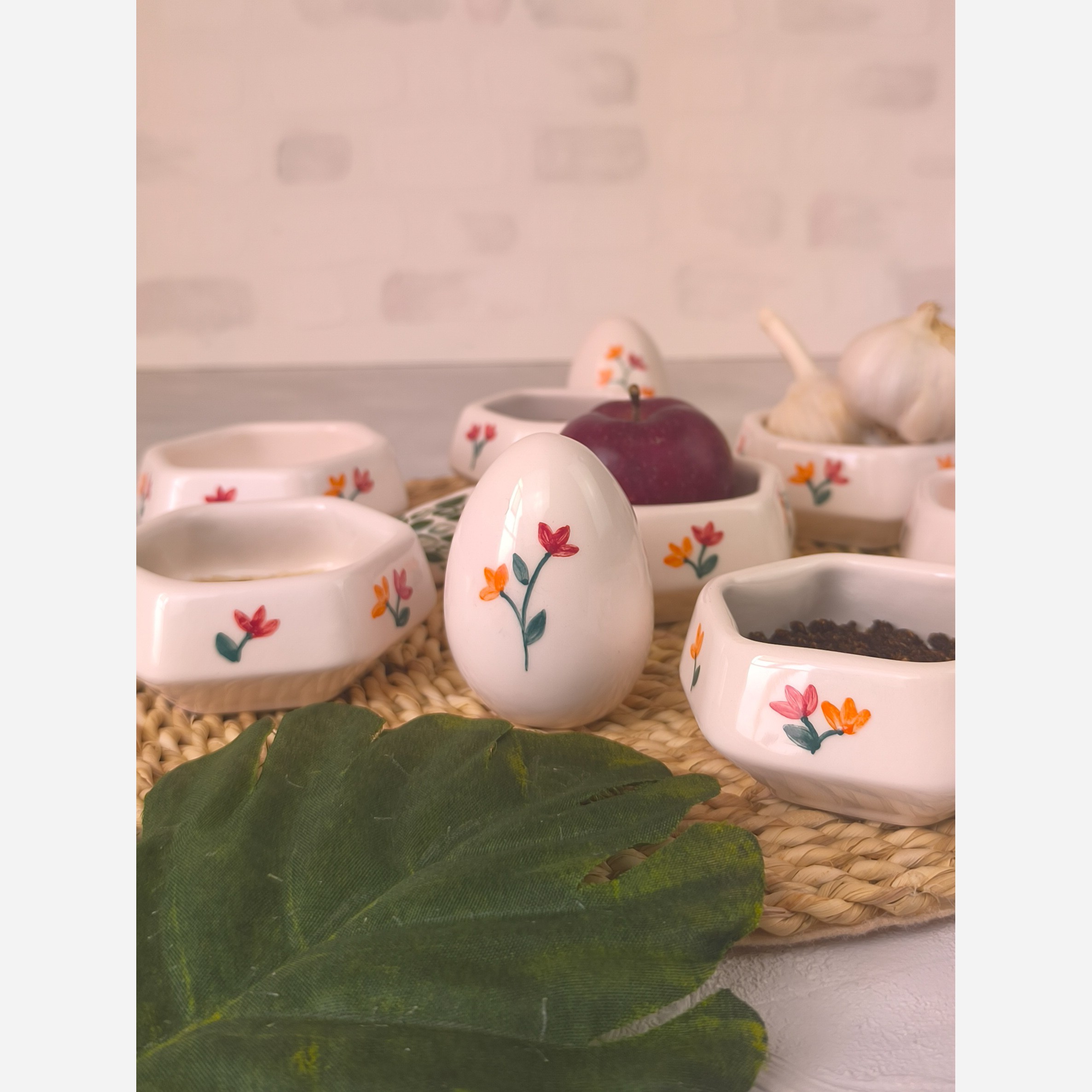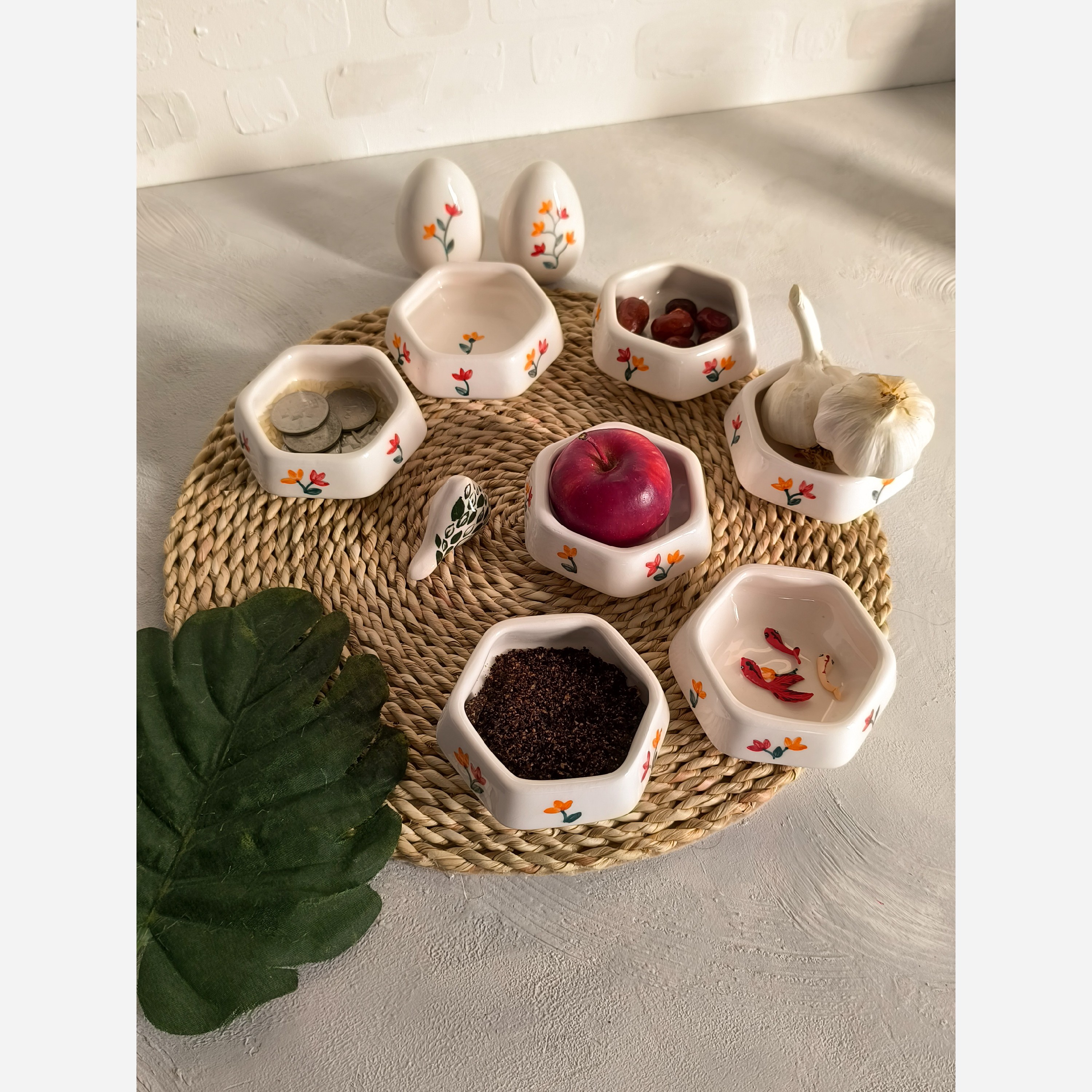 هفت سین سرامیکی هشت تکه مدل 6 ضلعی طرح لاله مبلمونسرا مدل 277395