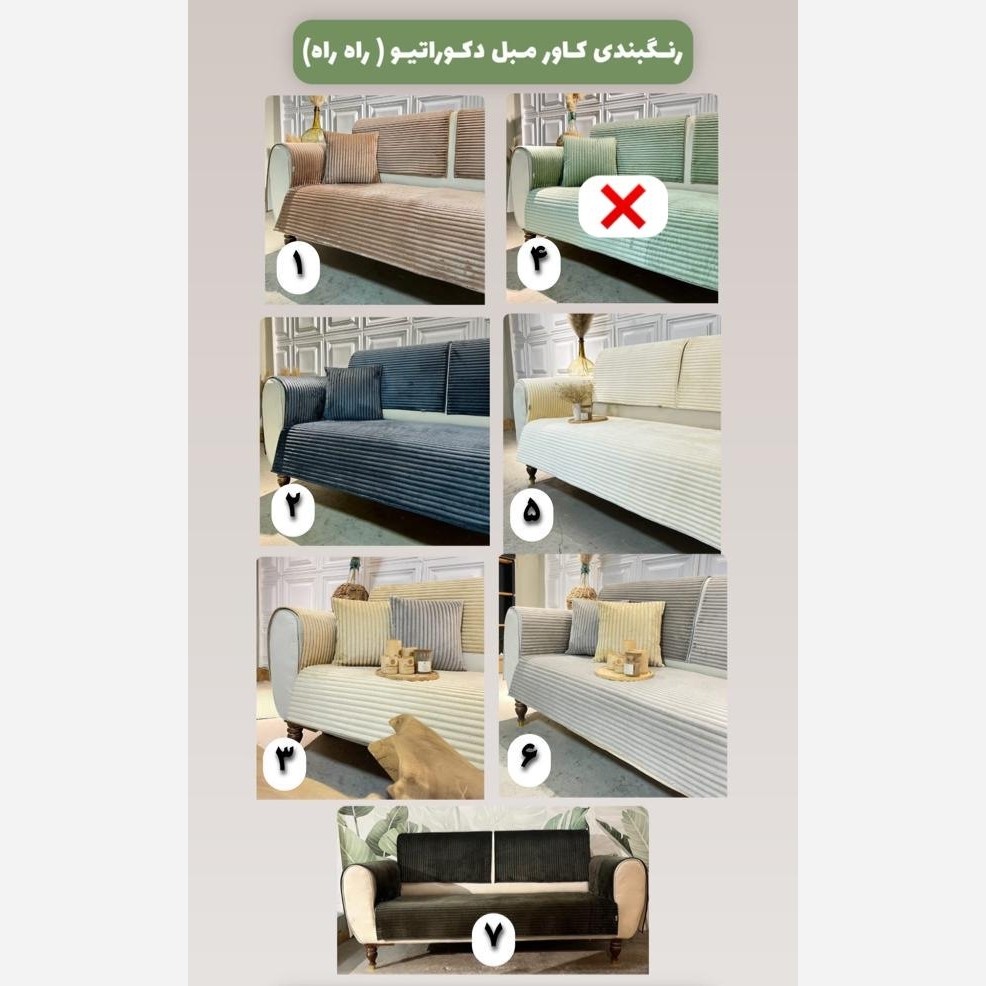 کاور مبل دکوراتیو با پارچه مبل نانو و ضد حساسیت بهترین راه حل برای کاور کردن مبل شما جوری که زیبایی مبل هم دیده شود و از دست کاور های زشت خلاص شوید کاور مبل دکوراتیو به صورت جدا گانه است یعنی کف مبل جدا پشتی مبل جدا دست های مبل جدا هستش و به صورت تک تک قابل سفارش است در 5 رنگ زیبا و مدرن همچنین این کاور ها ترمز گیر داره که روی مبل قشنگ بشینه و تکون نخوره و جمع نشه سایز بنده داره و به هر مبلی میخوره