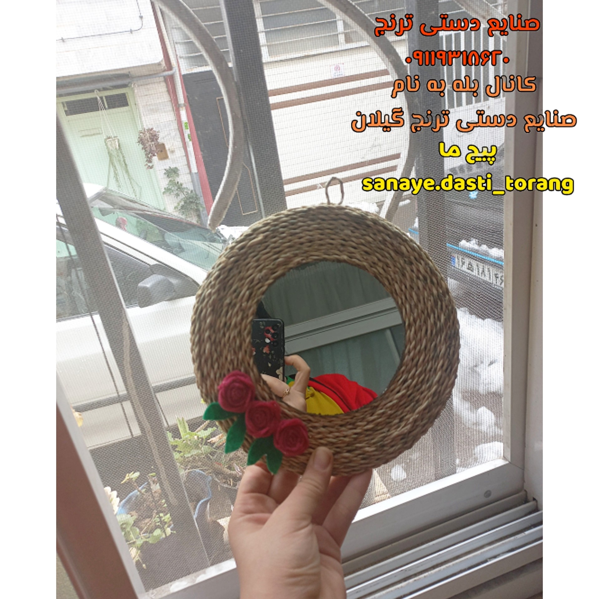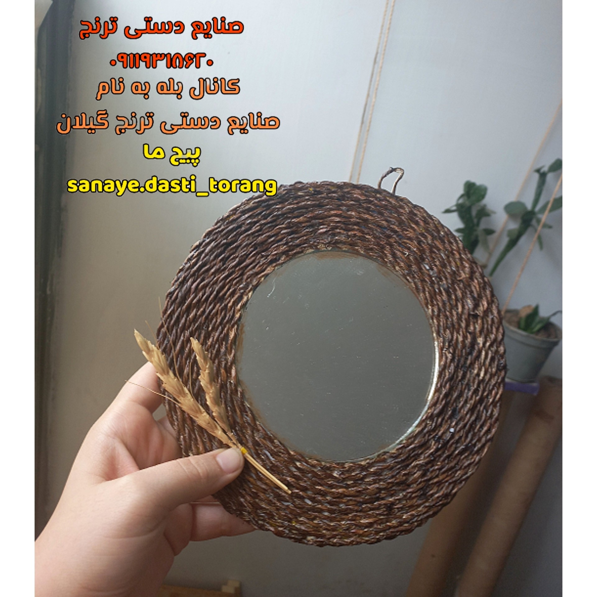 قطر آینه با تزیین حصیر دورش حدودا 20تا22