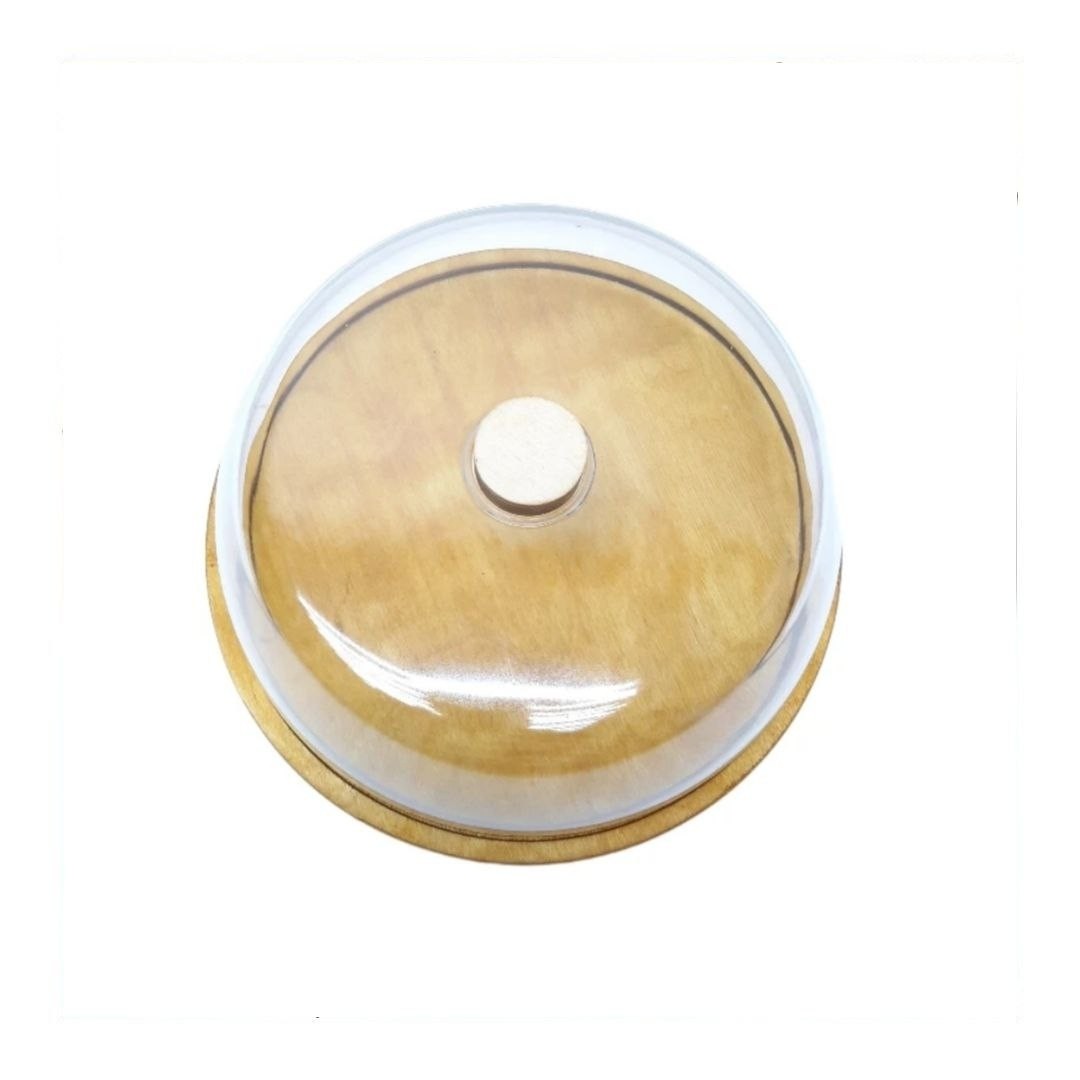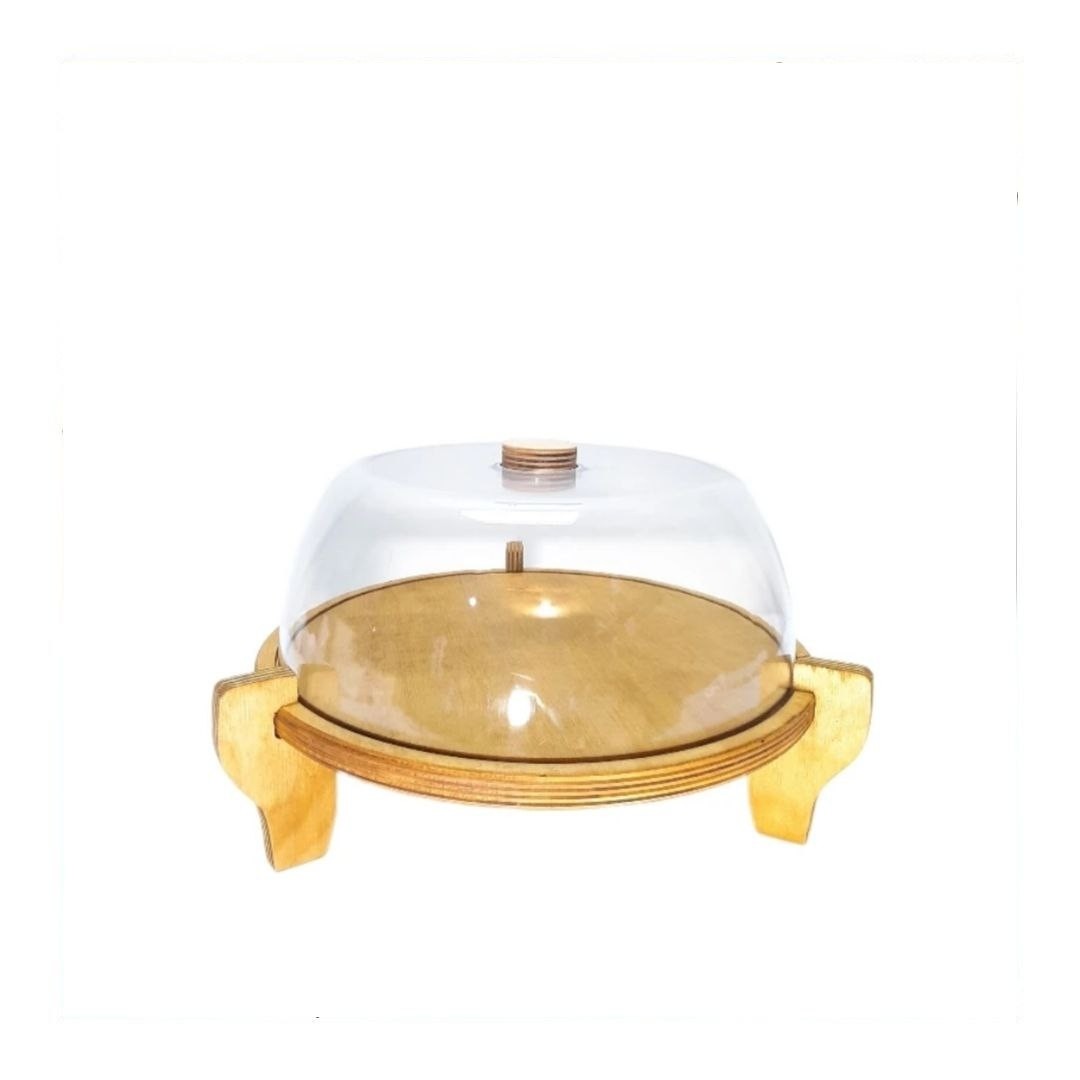 این کیک خوری با پایه به ارتفاع 10 سانتیمتر و قطر 29 سانتیمتر و درب از جنس طلق با کیفیت با ارتفاع 10 سانت و دستگیره از جنس کف محصول که چوب پلی وود به ضخامت 15 میل میباشد زیبایی و استحکام بالایی در برابر شکستن و خطرات بعد شکستگی بخشیده است.