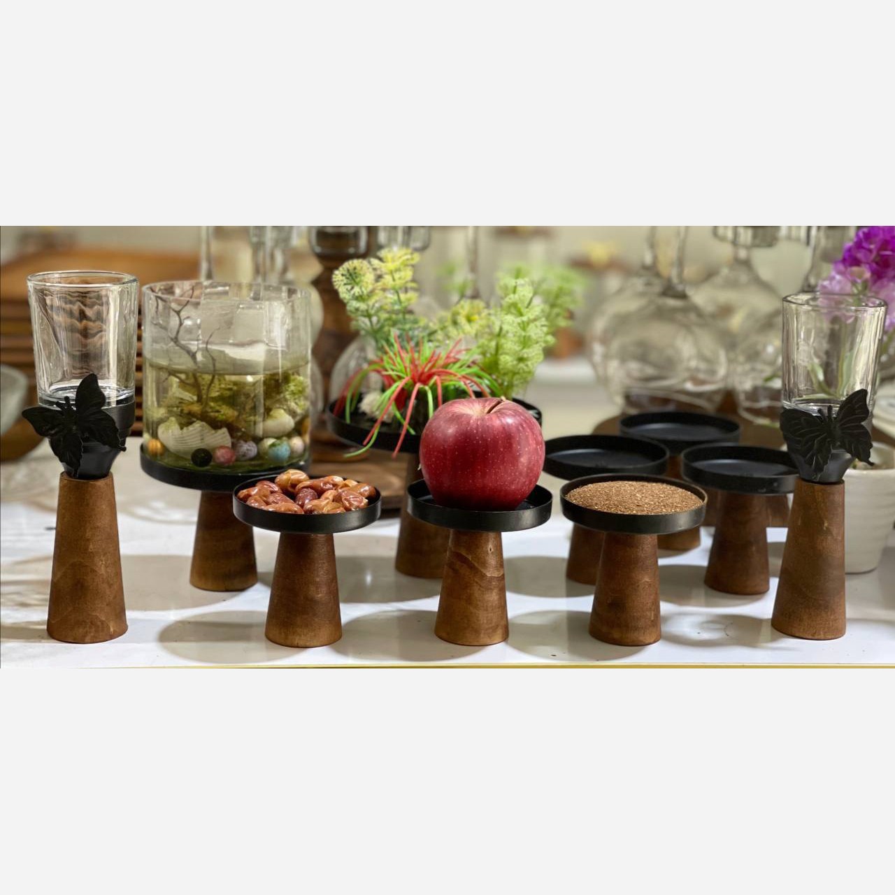 هفت سین 10تکه همراه تنگ و جاشمعی هفت سین فلزی پایه چوبی 1404 مبلمونسرا مدل 260425