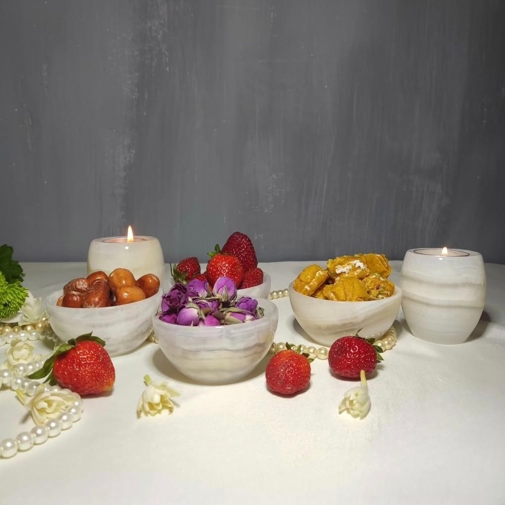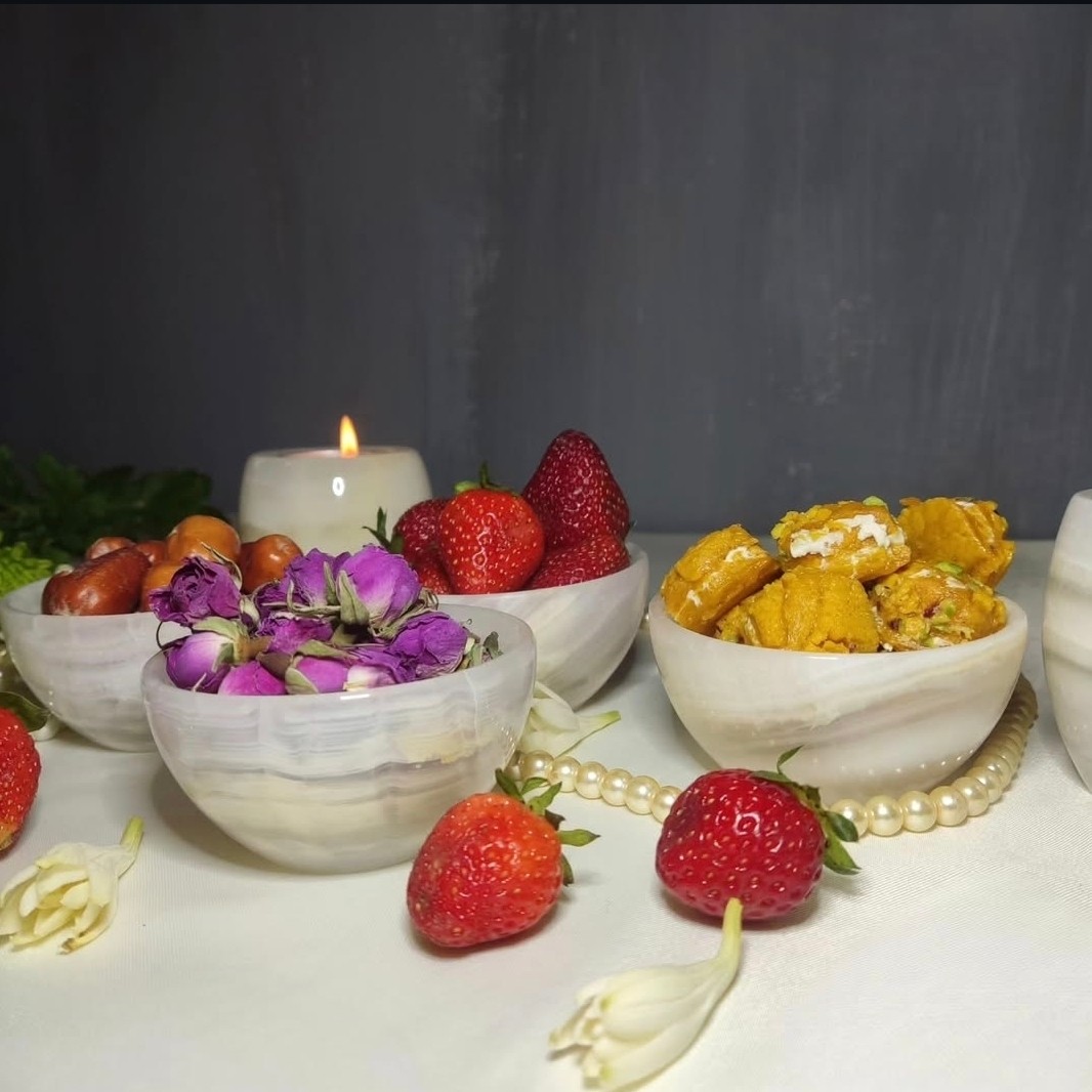 آجیل خوری و تنقلات خوری ظرفهای سنگی در دار سنگ مرمر طبیعی مخصوص پذیرایی و قندان و آجیل مبلمونسرا مدل 265512