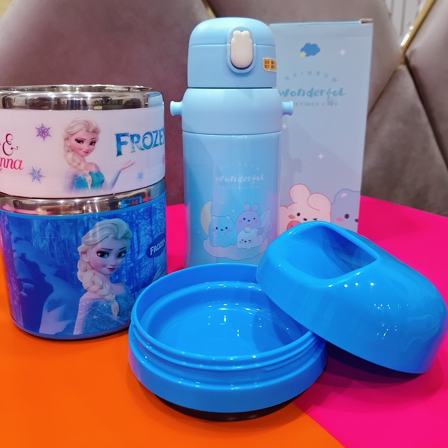 ظرف غذا دوطبقه کودک لانچ باکس استیل طرح فروزن مبلمونسرا مدل 287798