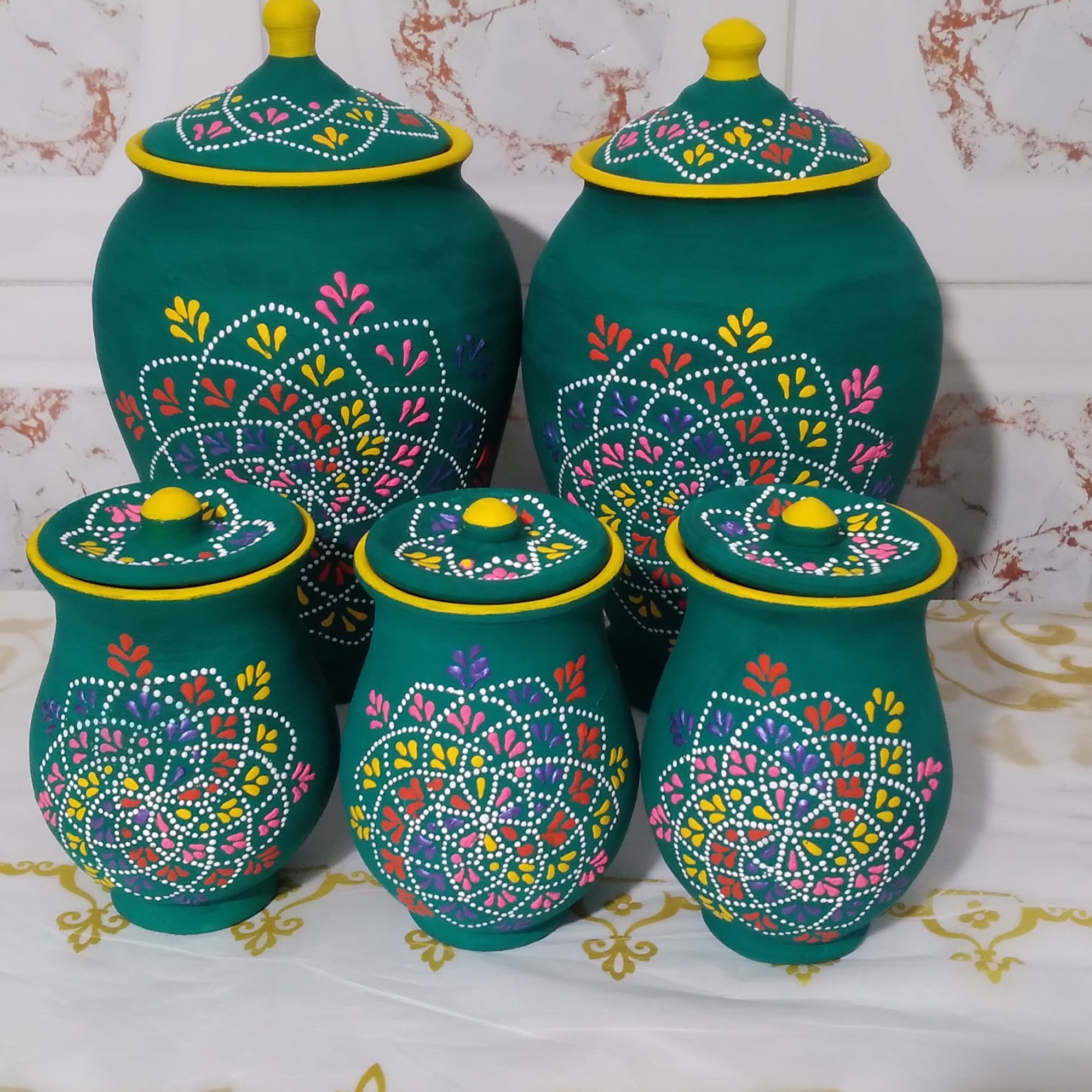 پاسماوری سفالی نقطه کوبی شده ، بسیار زیبا و خوش نقش، رنگ سبز یشمی ، قابل شستشو، قابل اجرا روی رنگ دلخواه مبلمونسرا مدل 290209