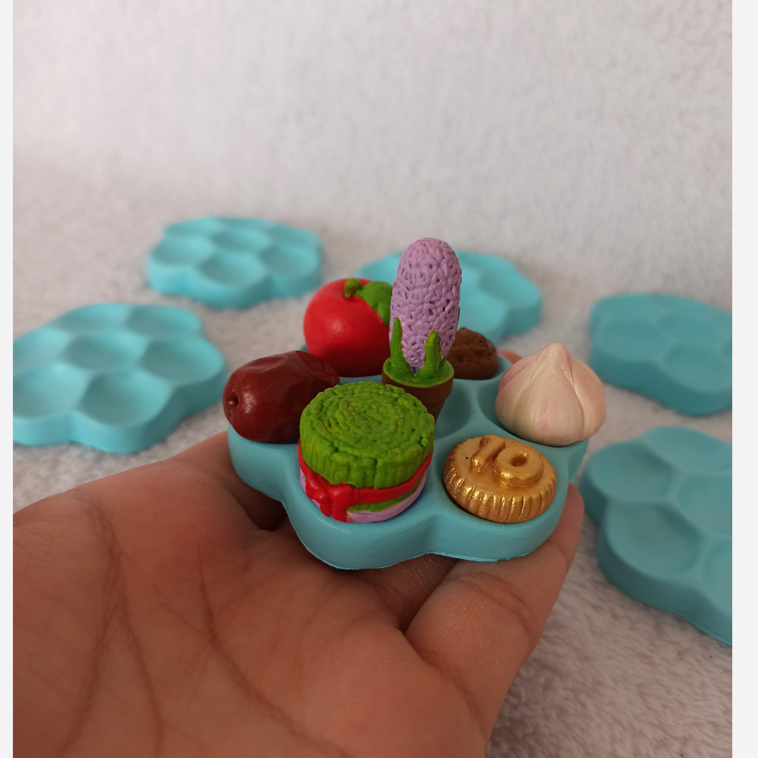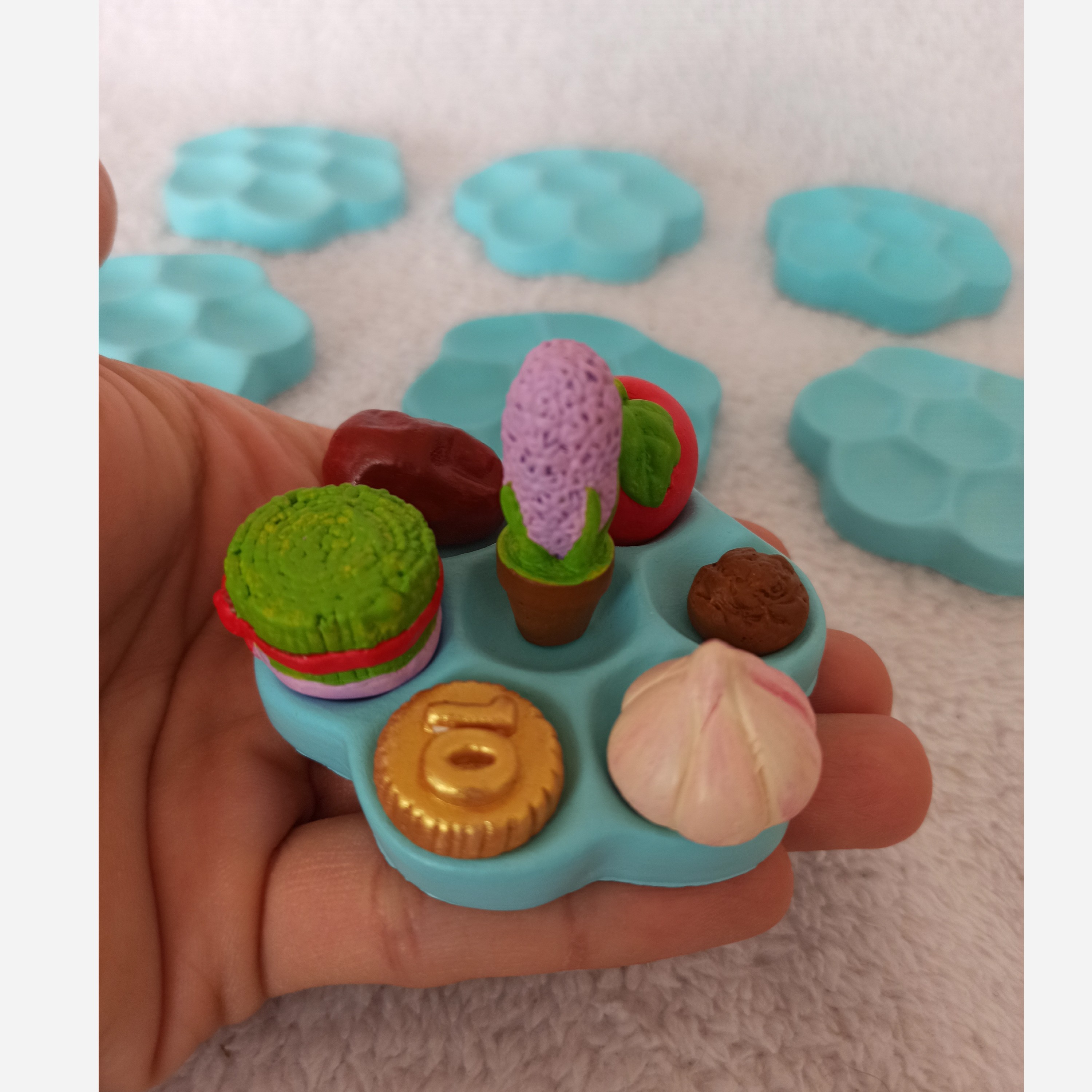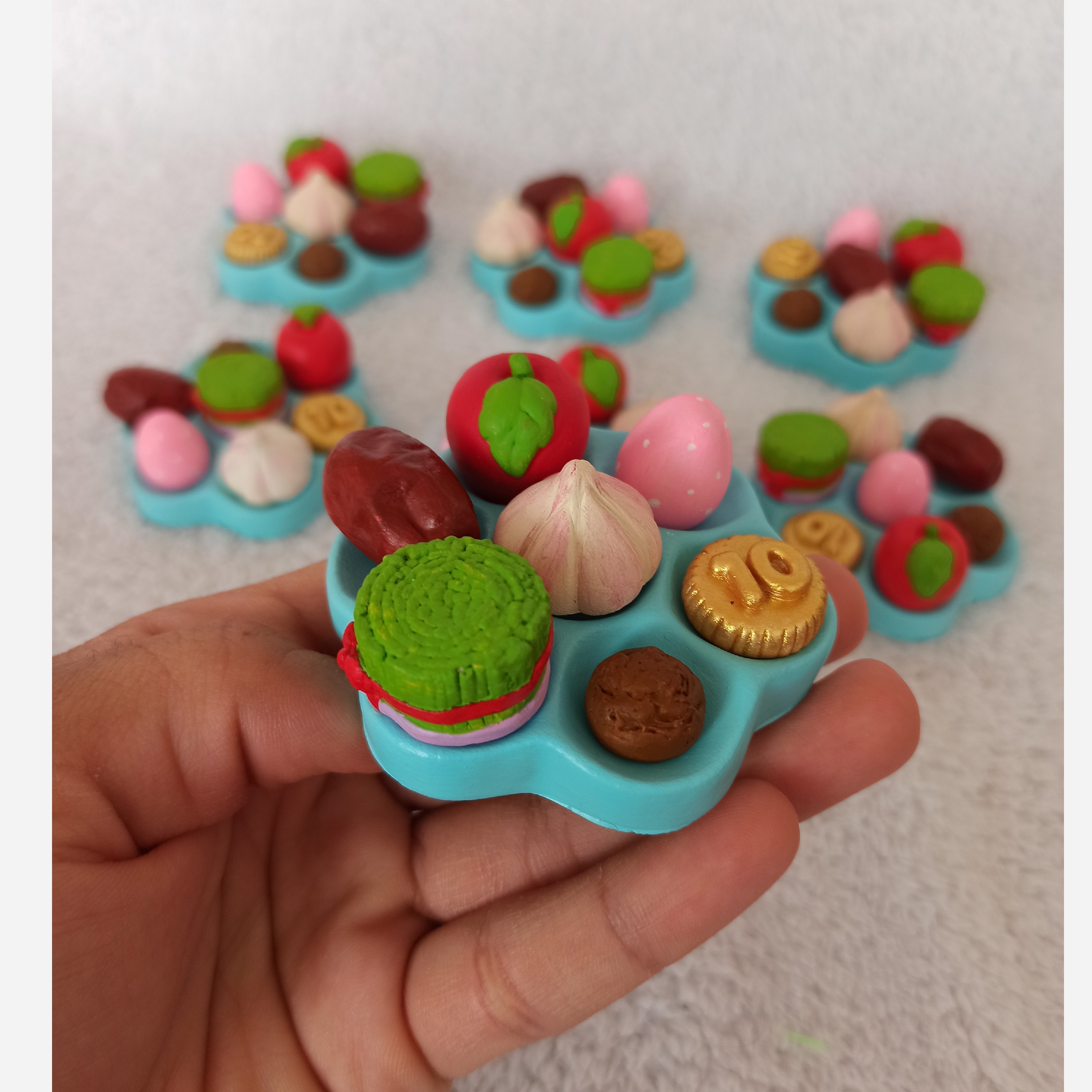 هفت سین رنگی مینیاتوری !!!! لطفاً به ابعاد کار دقت کنید و سایز رو از روی عکس تشخیص ندید !!!!! هر هفت سین شامل 8 تکه هستش اجزا به سینی چسبیده نیست و قابل چیدمان به طرح دلخواه است رنگآمیزی شده با رنگ اکریلیک و قابل شستشو جنس سنگ مصنوعی اندازه ظرف 7 در 1 سانتی متر اندازه سیب 2در 2 ، سکه 1.8 در 0.8 ، سمنو 1.4 در 0.9 ، سنبل 3.8 در 1.4 ، سبزه 2.2 در 1.5 ، سنجد 2.5 در 1.5 ، سیر 2 در 1.7