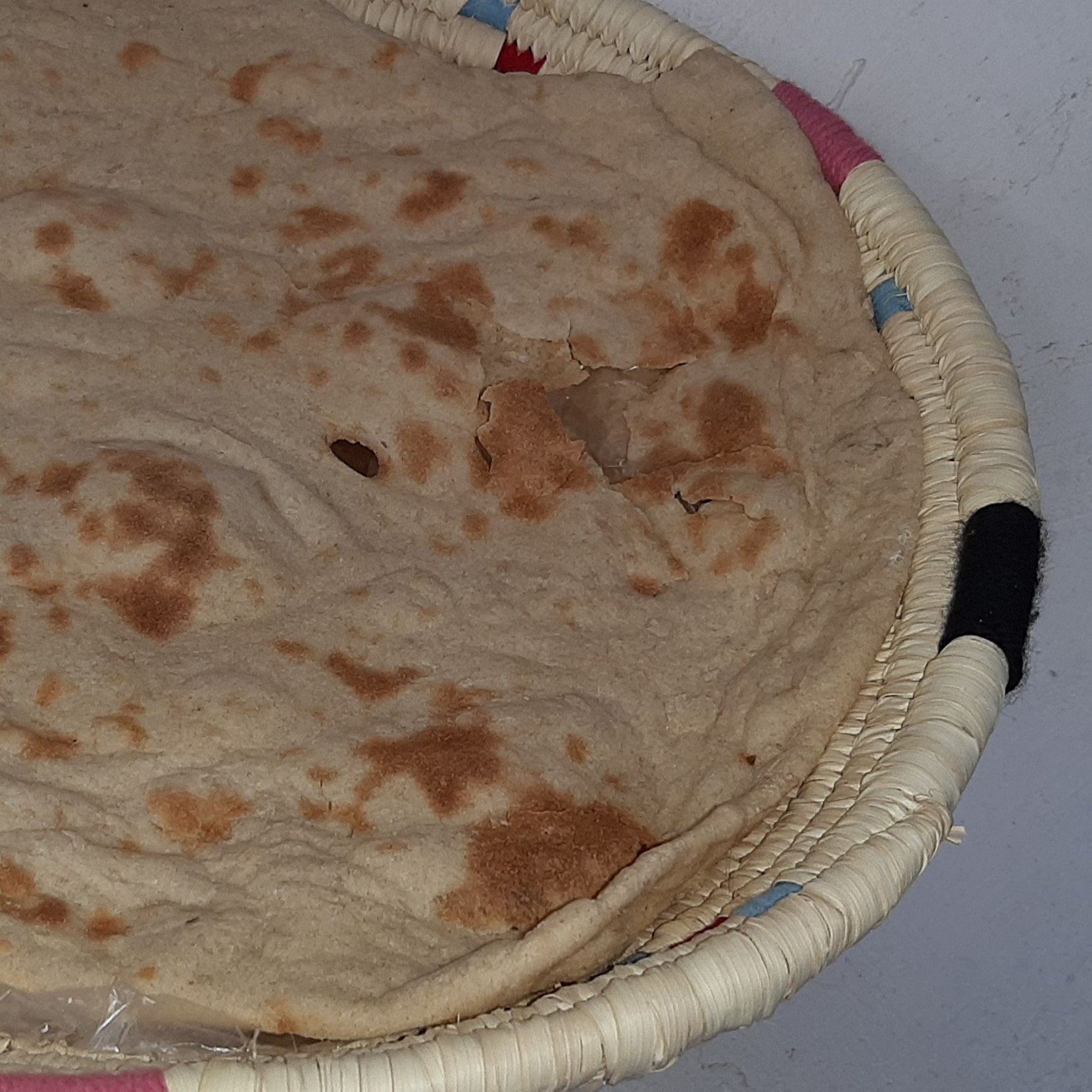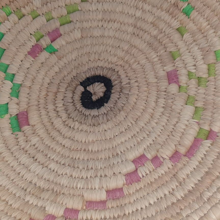 سبد بافته شده از برگ درخت خرما و طرح های آن با استفاده از کاموا می باشد.