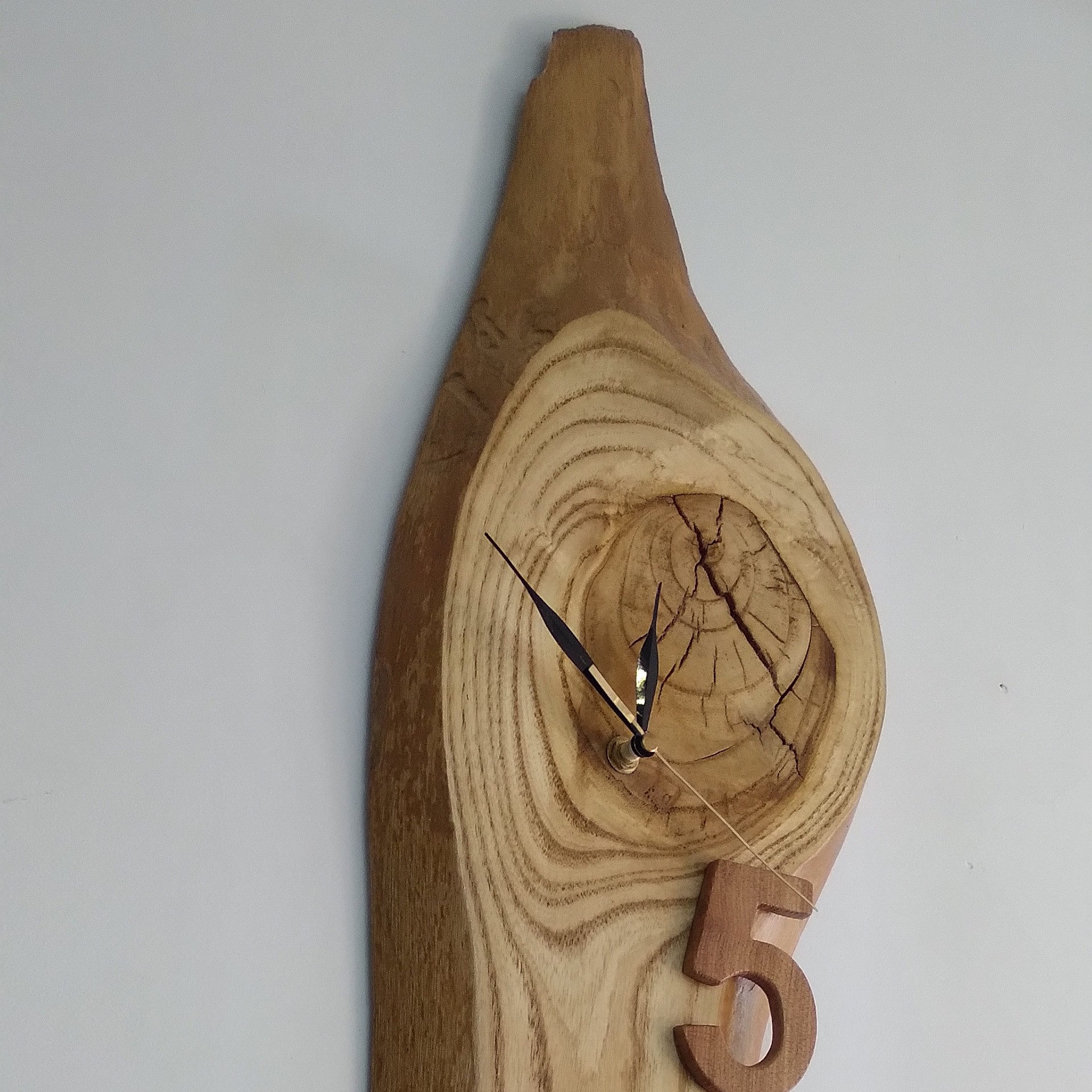 ساعت دیواری طرح روستیک کاملا طبیعت چوب حفظ شده و کاملا دستساز است. عدد 5 معرق شده از چوب گردو مناسب استفاده در خانه، اتاق، شرکت، محل کار و ... جنس، چوب عرعر پوشش جلا دهنده چوب موتور ساعت آرام گرد و ساخت تایوان میباشد.