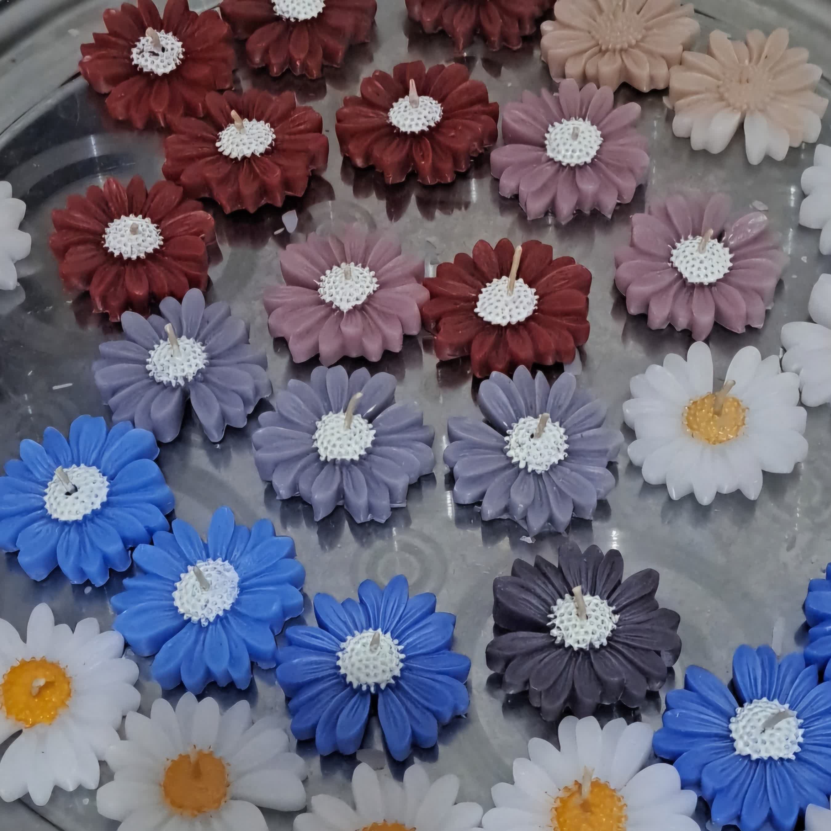 شمع بابونه در رنگ های متنوع به صورت تکی و عمده قابل سفارش هست مناسب برای مصارف خانگی وگیفت هدیه در جشن ها و تبلیغات یک هدیه به یاد ماندنی با کمترین هزینه هنگام سفارش نوع بسته بندی ذکر کنید