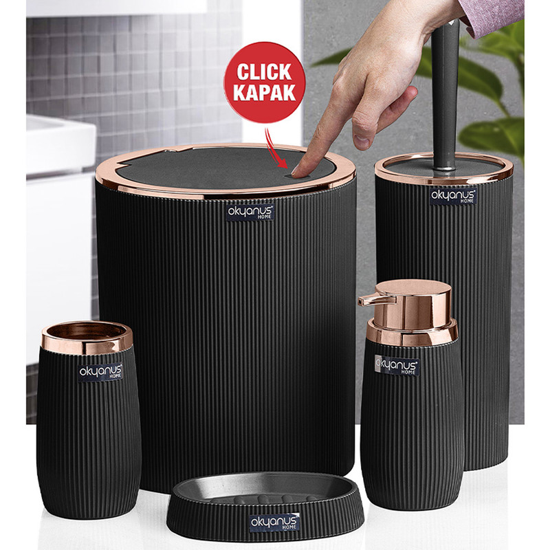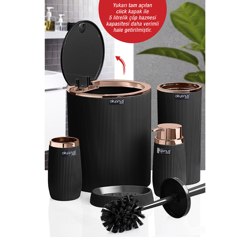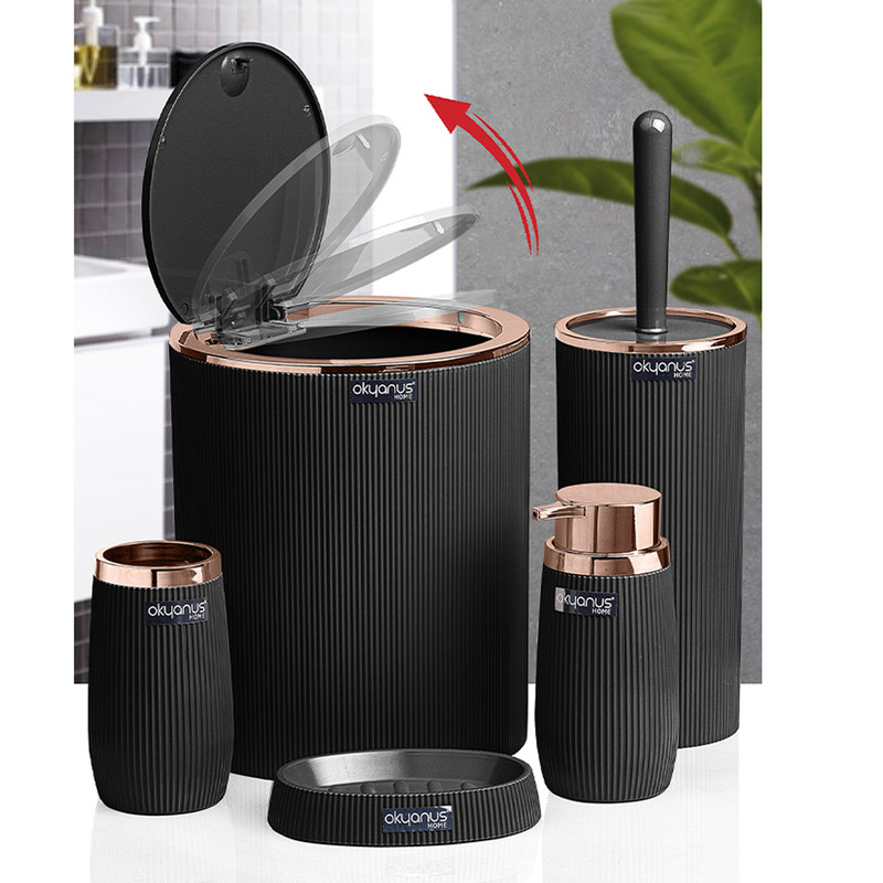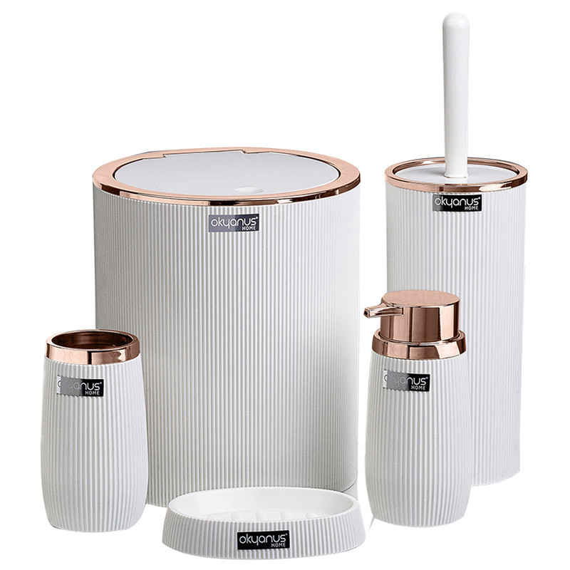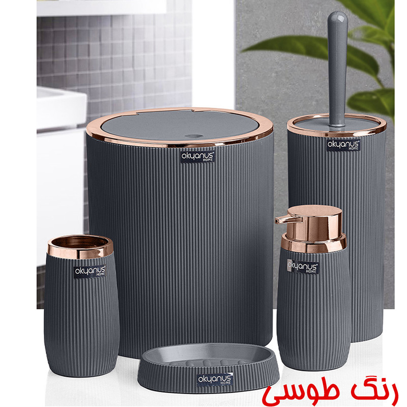 جدیدترین ست سرویس بهداشتی 5 پارچه ساخت فری ترکیه پیشرو در صنعت بهداشت و لوازم خانگی، این ست 5 پارچه تمام نیازهای موجود در حمام و سرویس های بهداشتی را برطرف می نماید، محصولی بسیار کاربردی به همراه کیفیت و زیبایی. این مجموعه زیبا از آکریلیک تولید شده است که ی بسیار بالایی دارد. دارای استانداردهای ایمنی و سلامت بهداشت انسان از اروپا را دارد و محصولی صادراتی به اروپا می باشد. شامل سطل درب دار، فرچه و ظرف مخصوص آن، جا مسواکی، جامایع پمپی و جاصابونی می باشد.تمامی اقلام قابلیت شستوشو دارند و میتوانید با خیالی آسوده، آنها را بشویید. با این ست بهداشتی، زیبایی محیط و سرویس ها چندین برابر میشود.