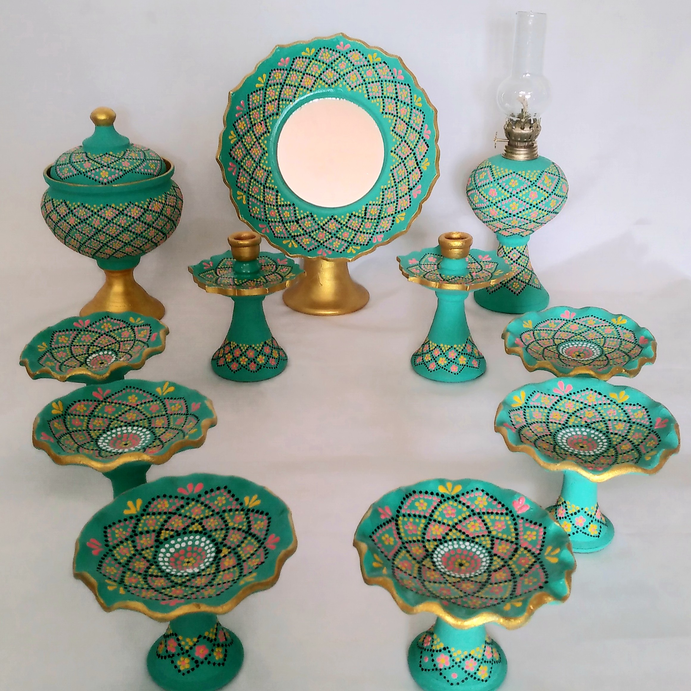 هفت سین سفالی نقطه کوبی شده ، 11 تکه ، قابل سفارش در رنگ دلخواه مبلمونسرا مدل 259517