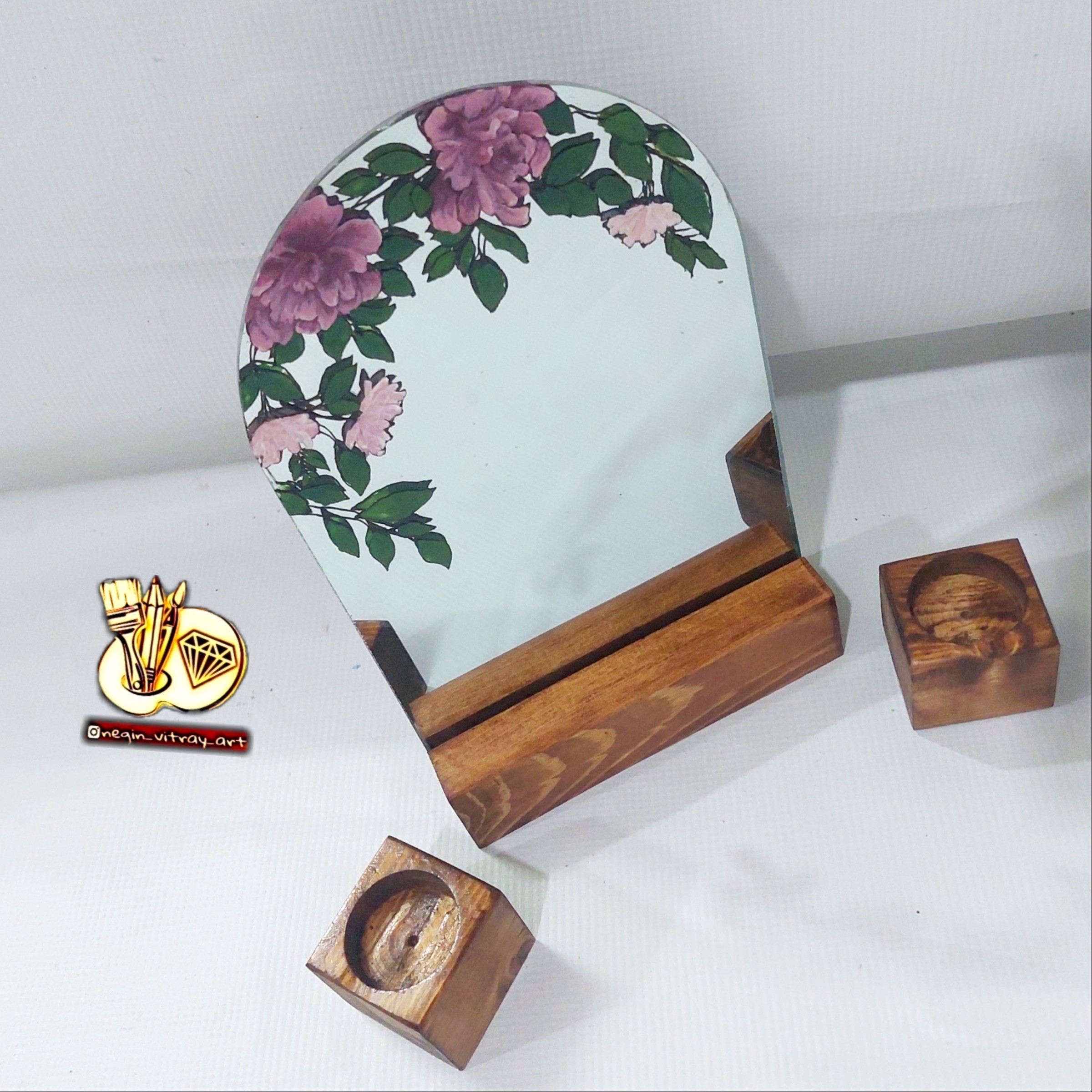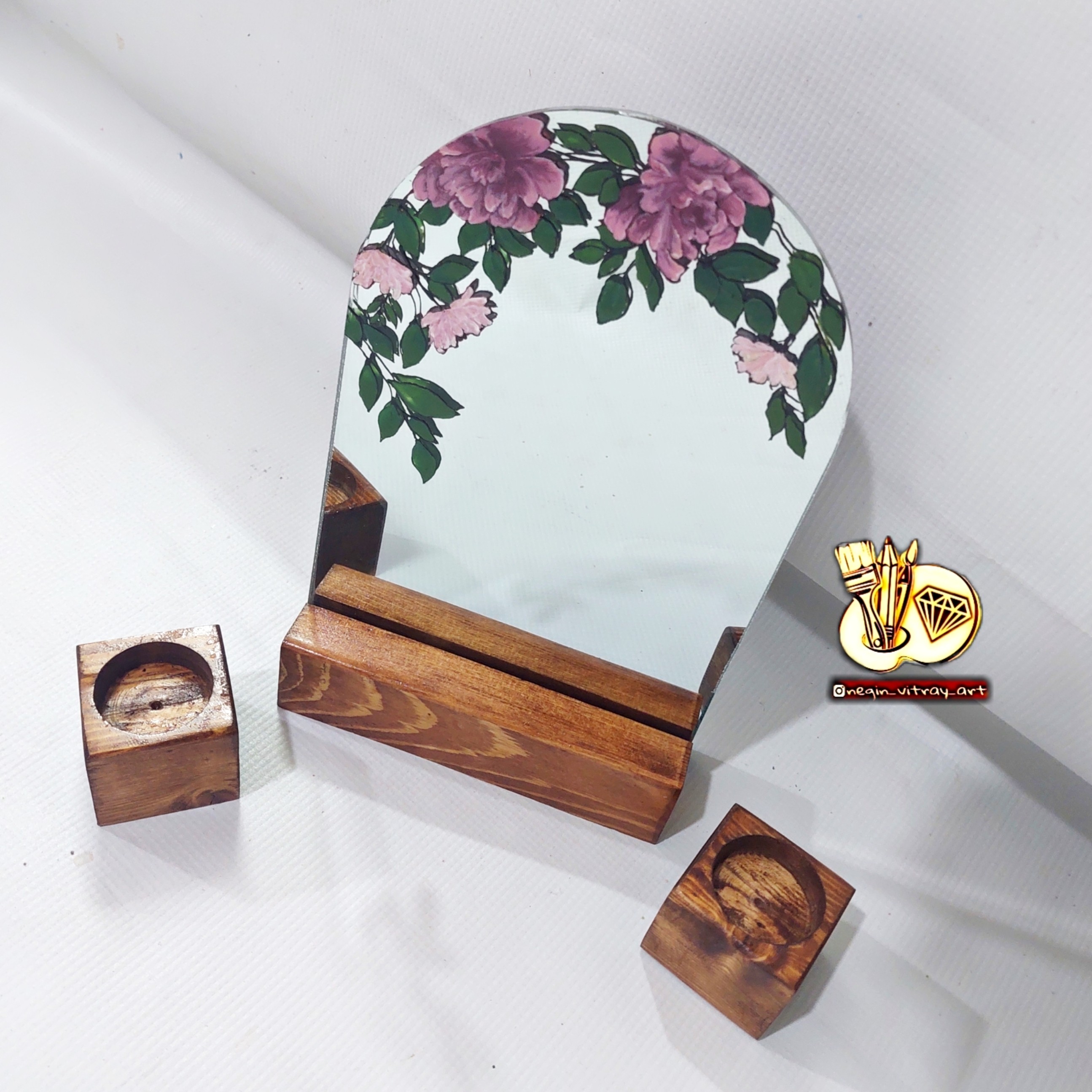 اینه و جاشمعی رومیزی گنبدی با پایه چوبی گوشه دار مبلمونسرا مدل 262837