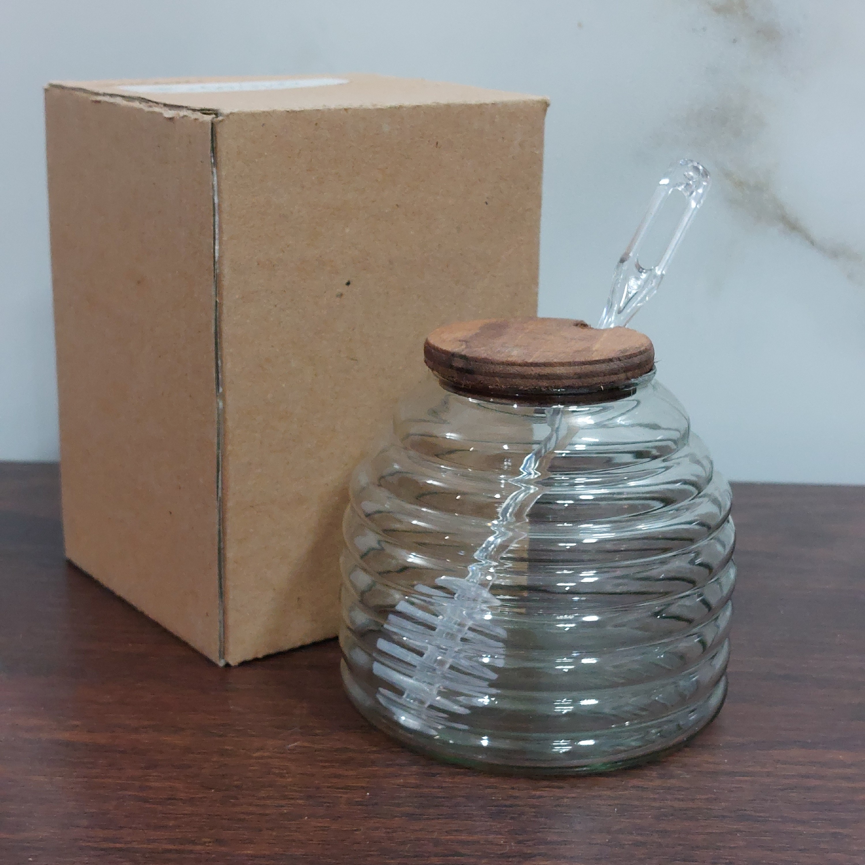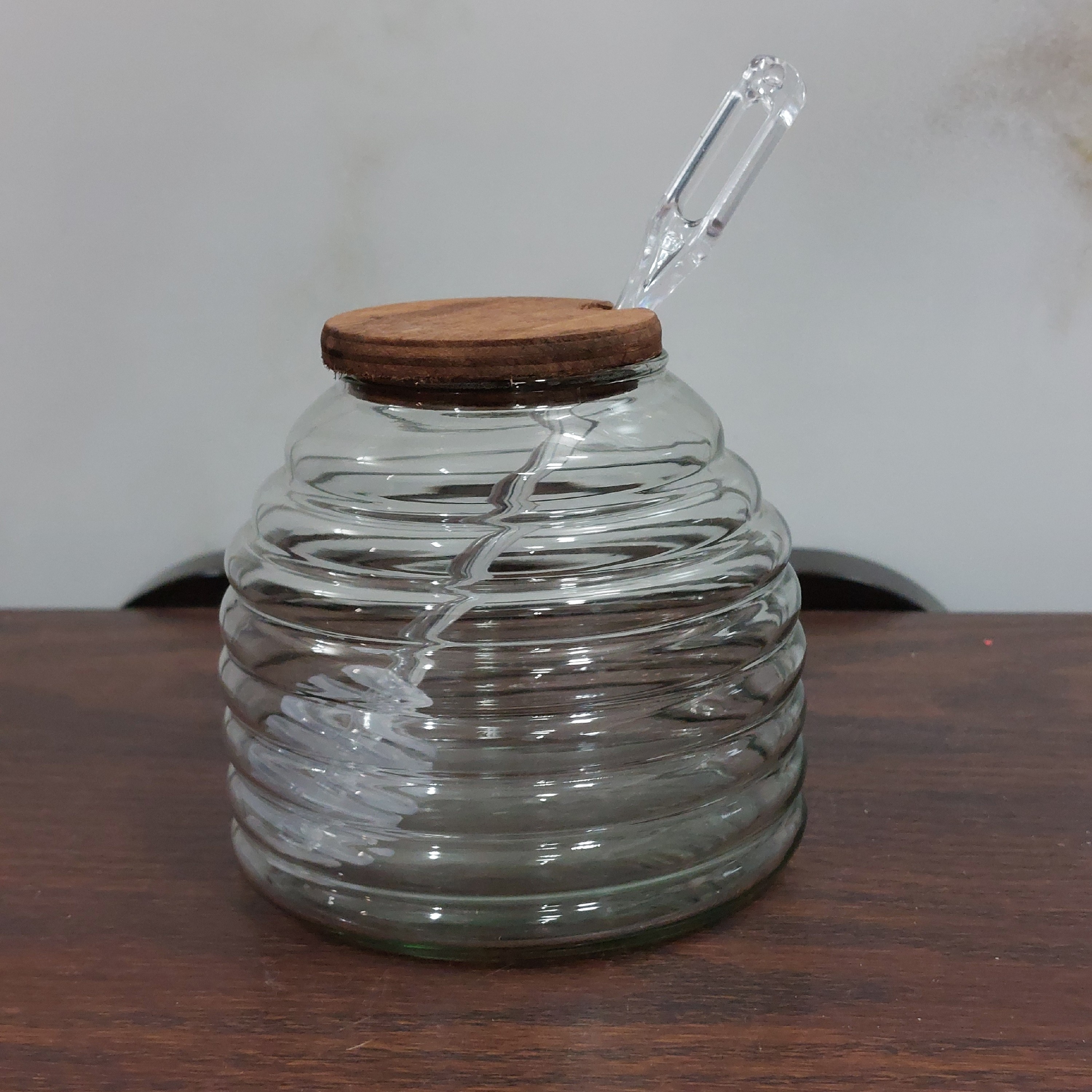 ظرف عسل شیشه ای با درب چوبی به همراه قاشق مبلمونسرا مدل 288990