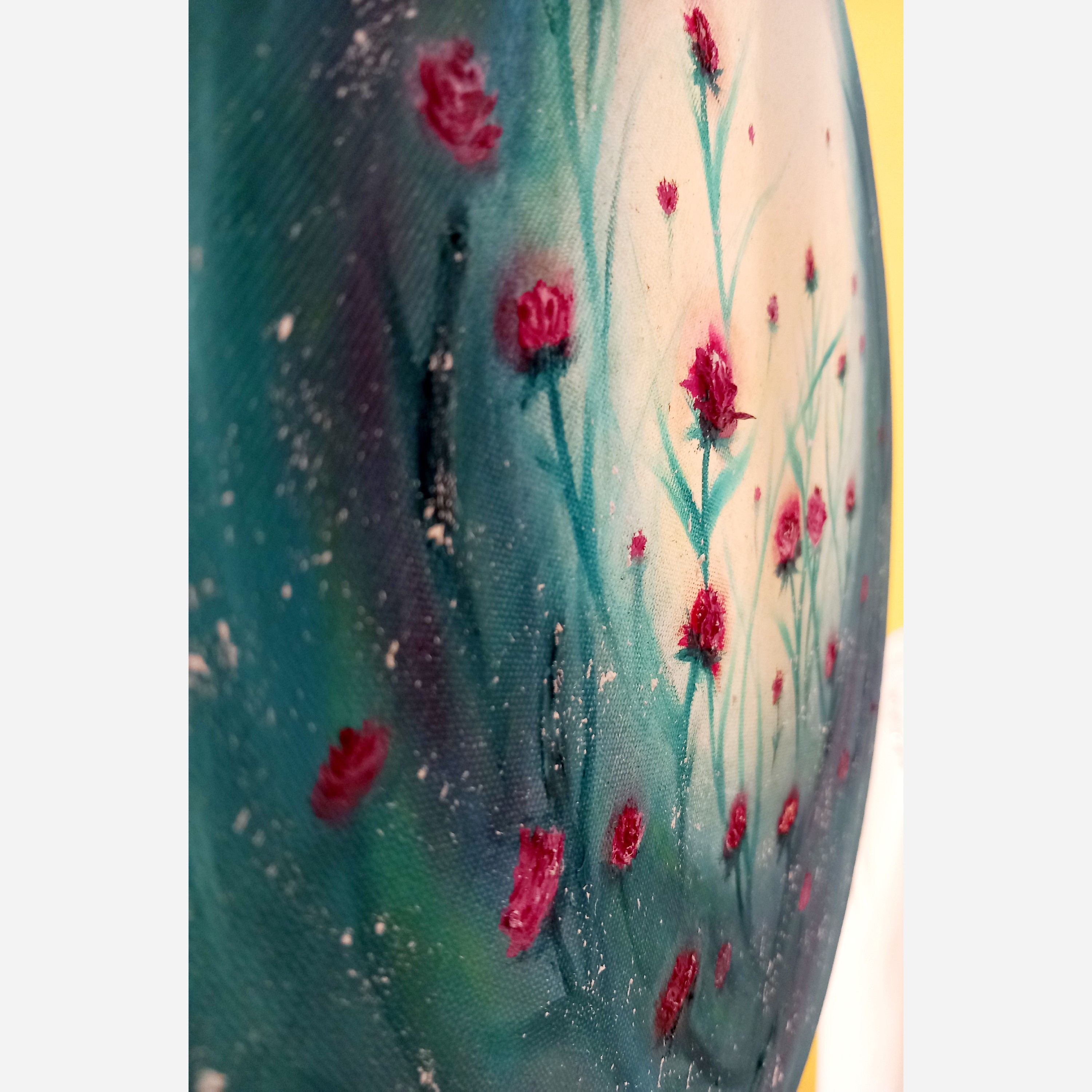 ✨توجه بفرمایید همین محصول که در عکس هست خدمتتون ارسال میشه.پس نگران نباشید که سفارش میدین و بعد تابلویی با طرح و ابعاد مشخصات دیگه تحویل میگیرید.از این تابلو همین یکی هستش و همینم ارسال میشه✨ نقاشی رنگ روغن گل برجسته قطر بوم 30 سانت.طرح تابش نور به جنگل گل رز.بسیار بسیار زیبا و آرامش بخش و خاص.طبیعت زیبا و روح بخش رو کنار خودتون داشته باشین.خودش از عکساش خیلی زیباتره تو باسلام کیفیت عکس و فیلم خیلی افت میکنه.ارسال فوری با پیک.امکان خرید و تحویل حضوری هم هستش