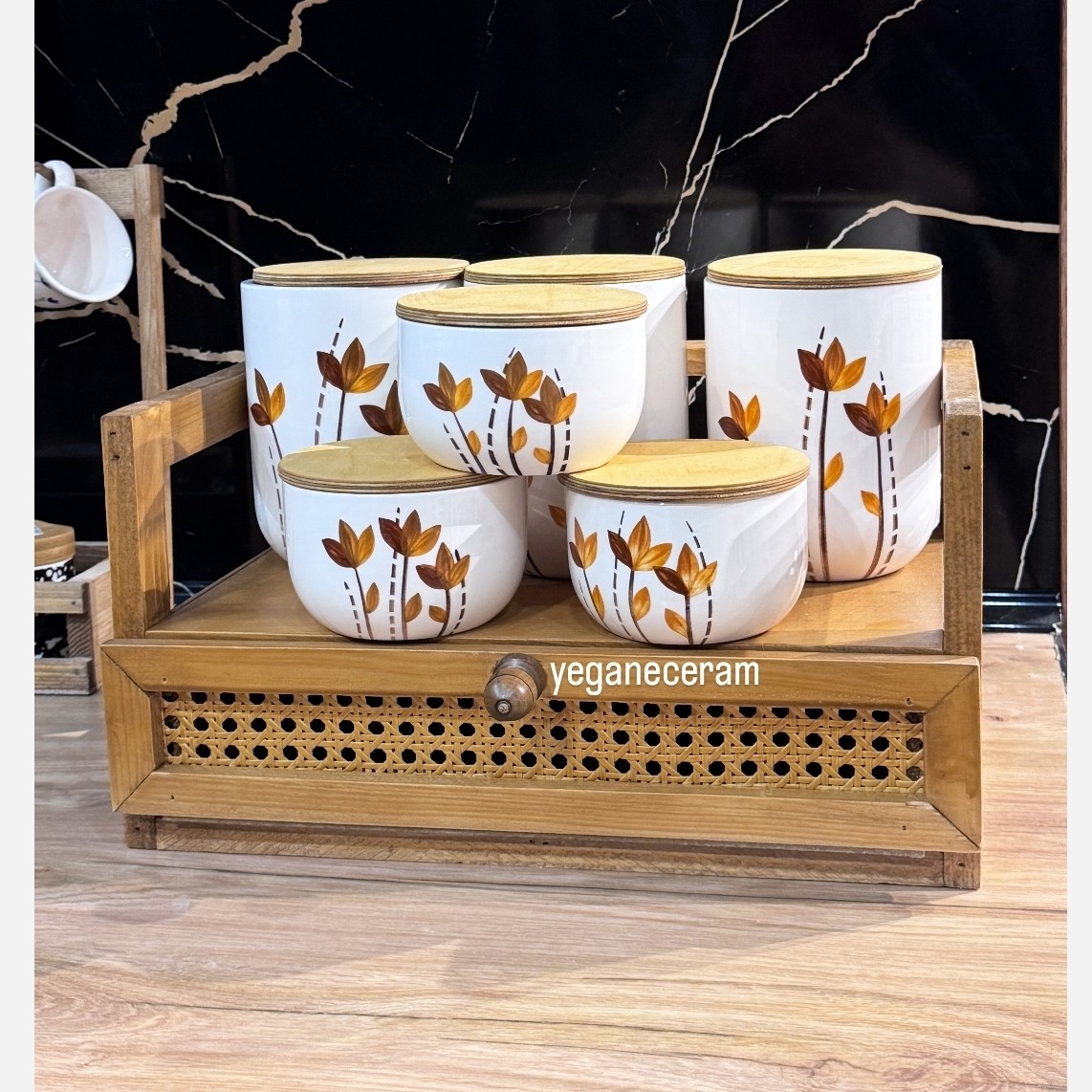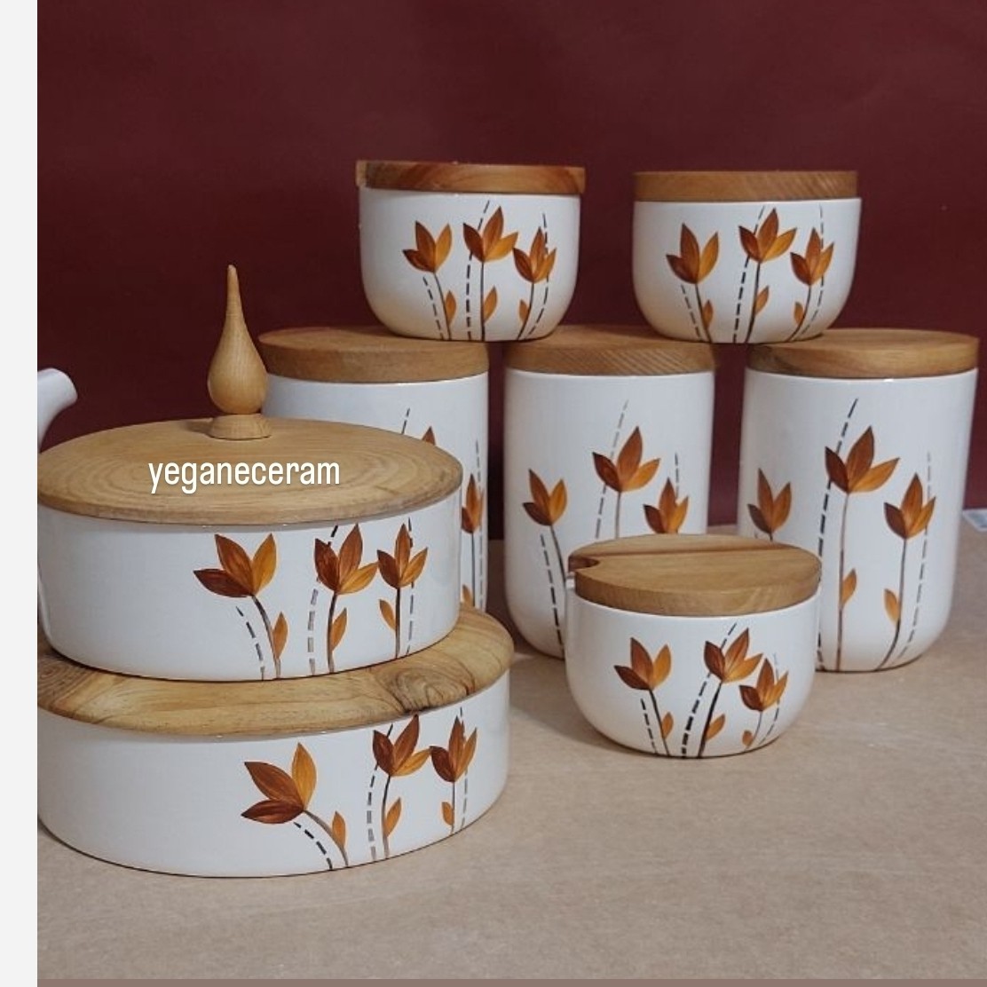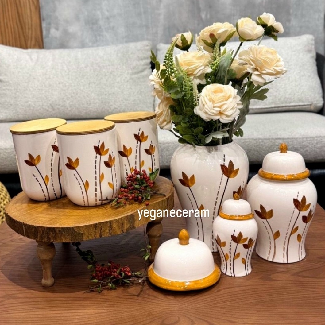 همه کارها با دست و با رنگهای کوره ای نقاشی شده. دوبار کوره رفته و کاملا مصرفی و قابل شستشو. از ست کار میتونین روغن ریز،فنجون،قندون و شکلاتخوری و ...همه اقلام مصرفی رو سفارش بدین. این طرح انحصاری و محصول می باشد. درب بانکه ها واشردار هست و کامل چفت میشه.