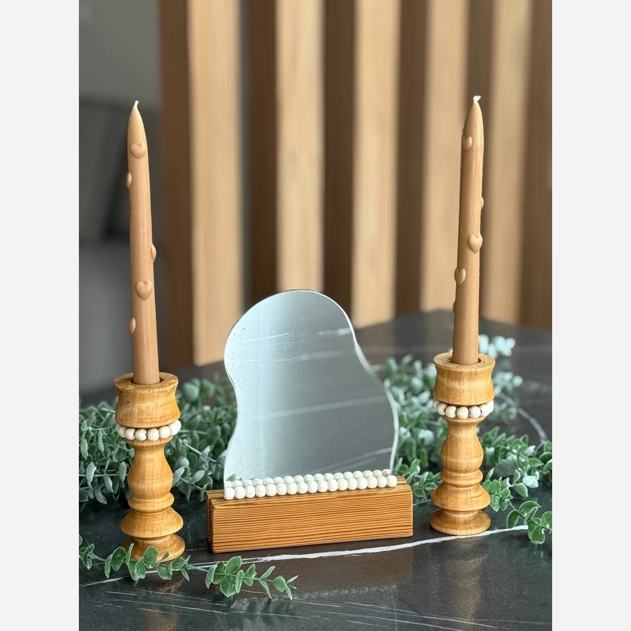 آینه پایه چوبی گنبدی و دفرمه مهره دار