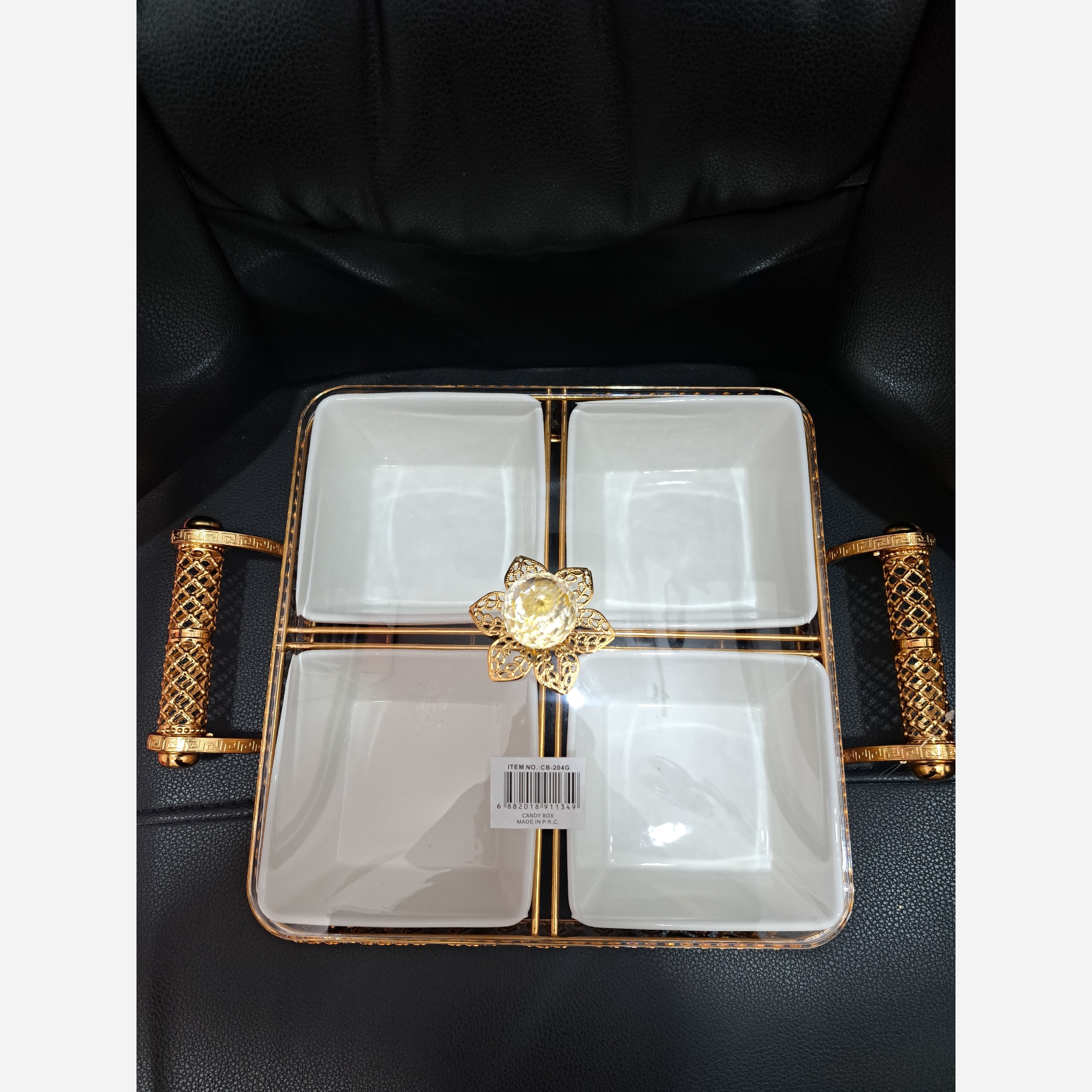 ظرف پذیرایی کاسه سرامیکی پایه دار طلایی آجیل خوری و شکلات خوری وارداتی