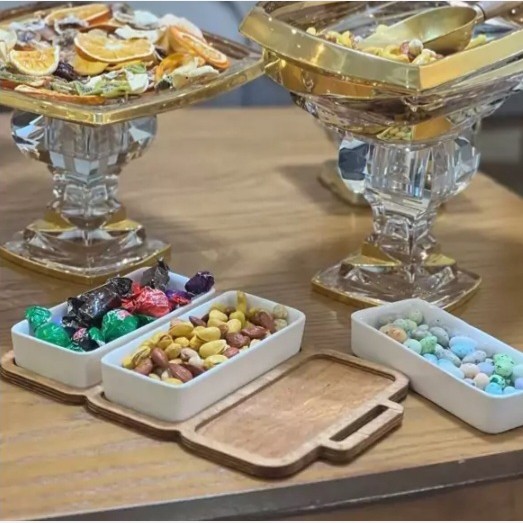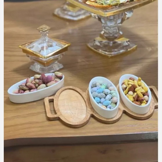 اردوخوری سرامیکی پایه چوبی در دو شکل آجیل خوری سرامیکی پایه چوبی تنقلات خوری پایه چوبی اردوخوری چوب و سرامیک مبلمونسرا مدل 265805