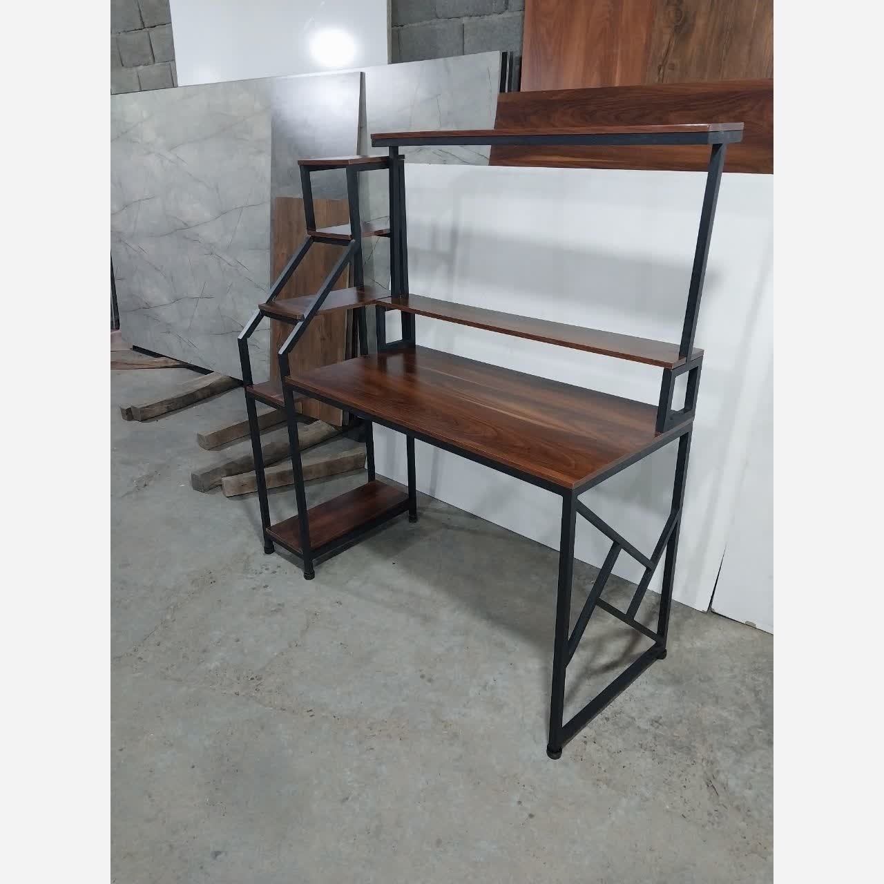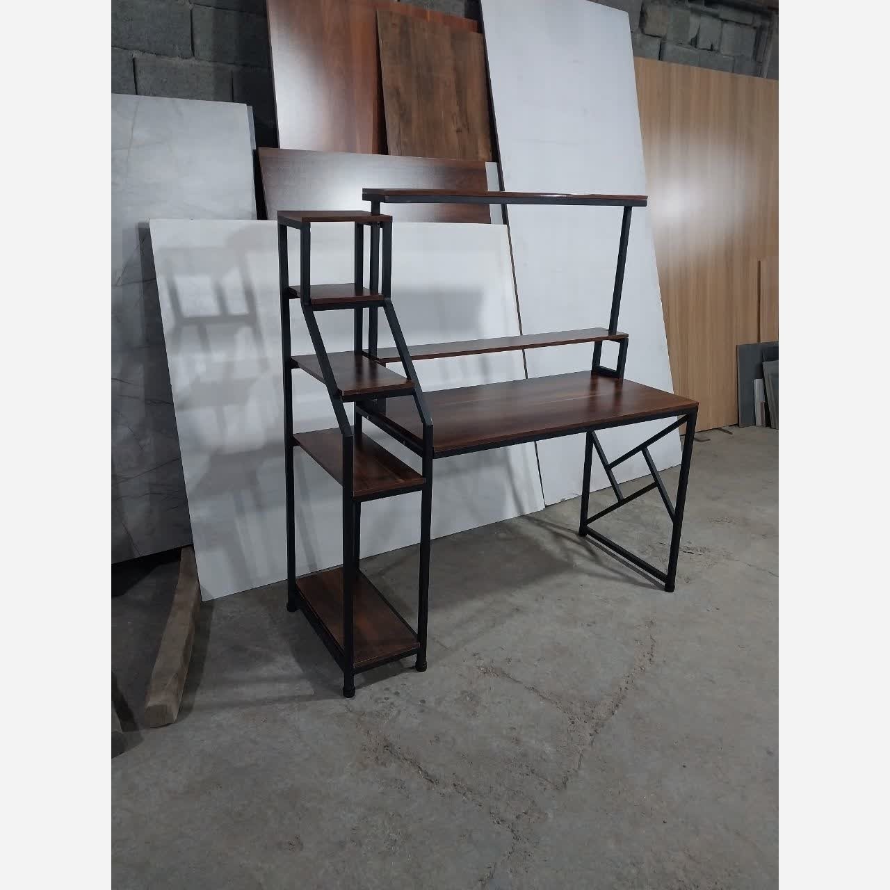 میز تحریر بغل کتابخانه دار میز کامپیوتر چوبی فلزی مبلمونسرا مدل 237660