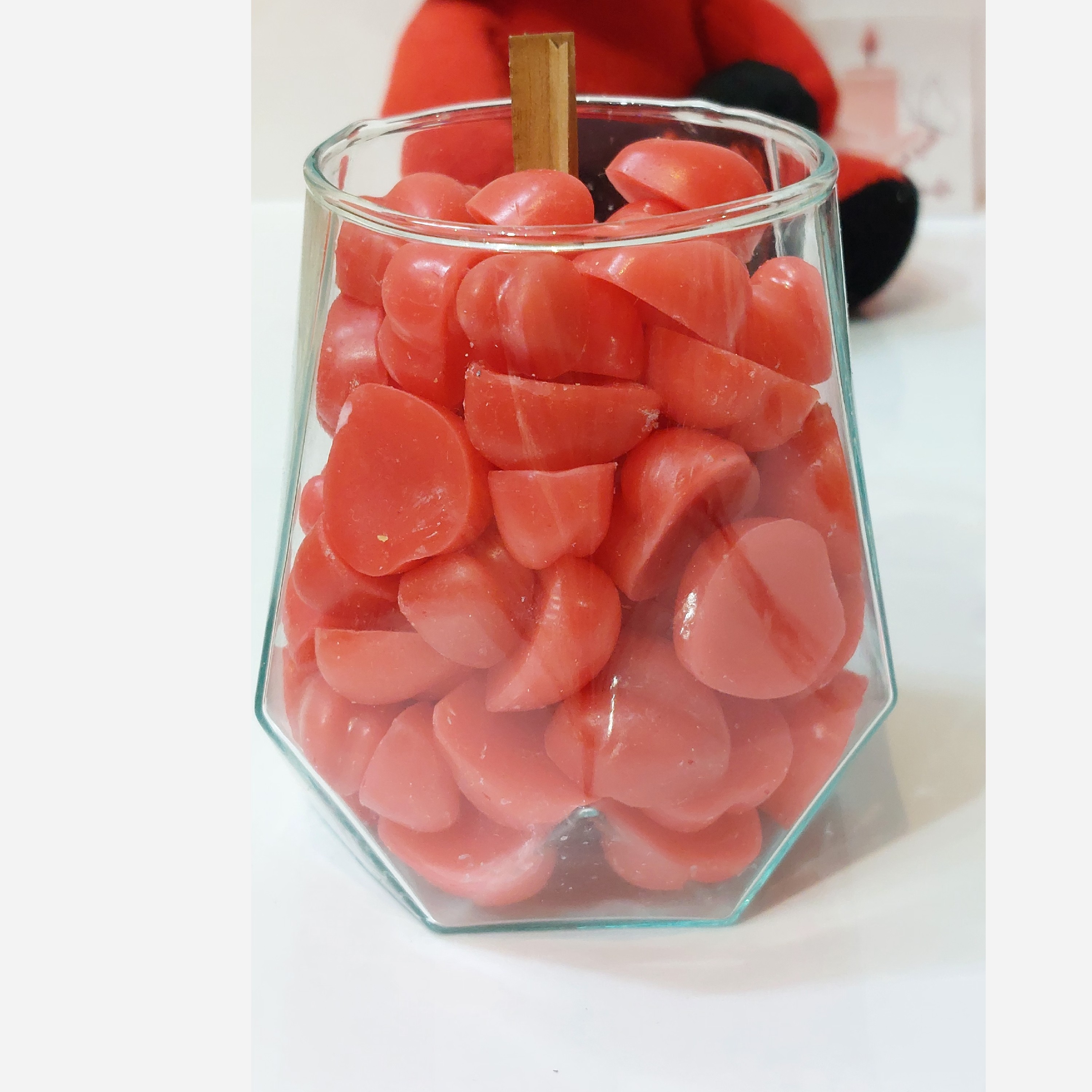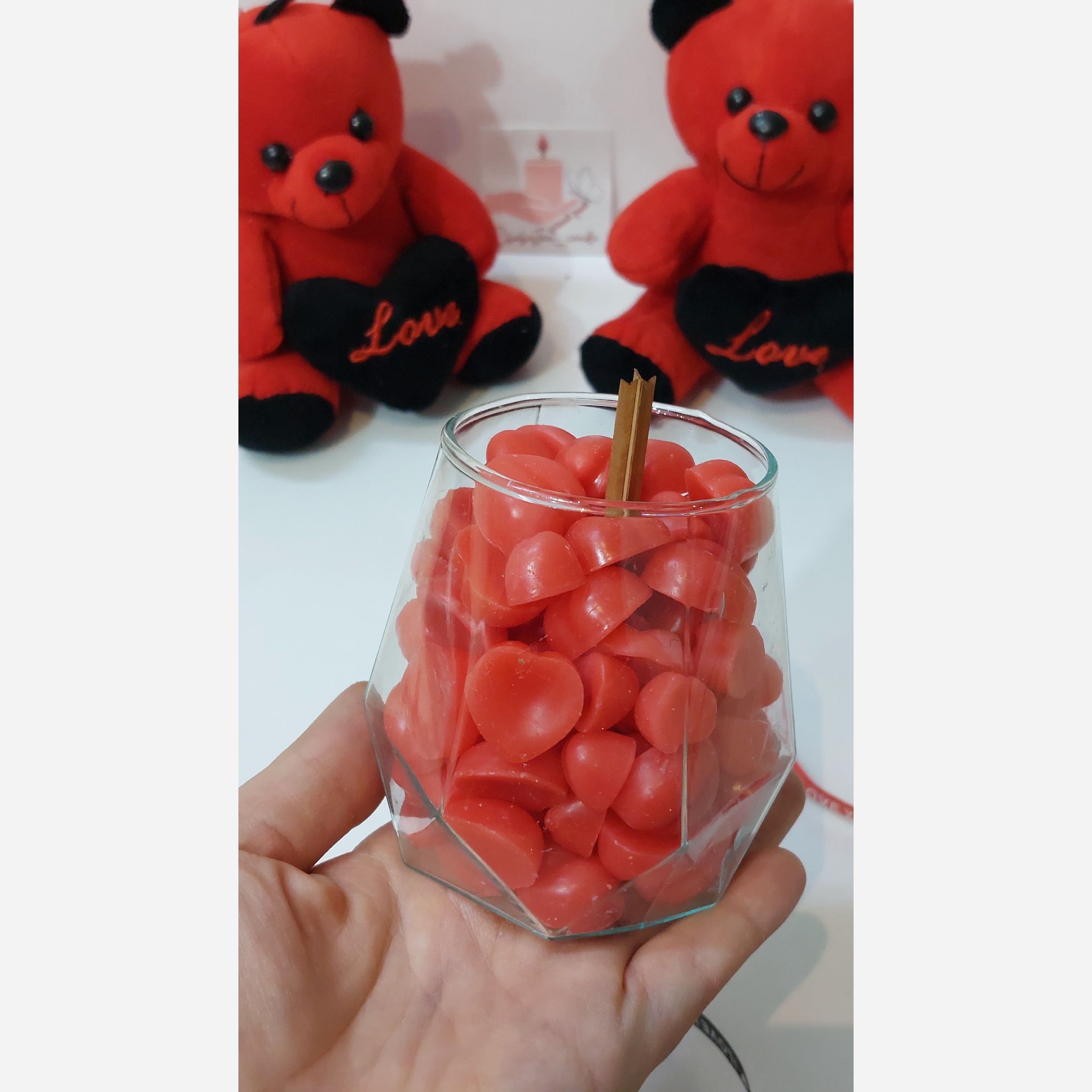 یه جار شیشه ای با فیتیله چوبی با کیفیت پر از قلبهای قشنگ