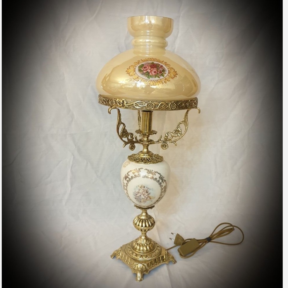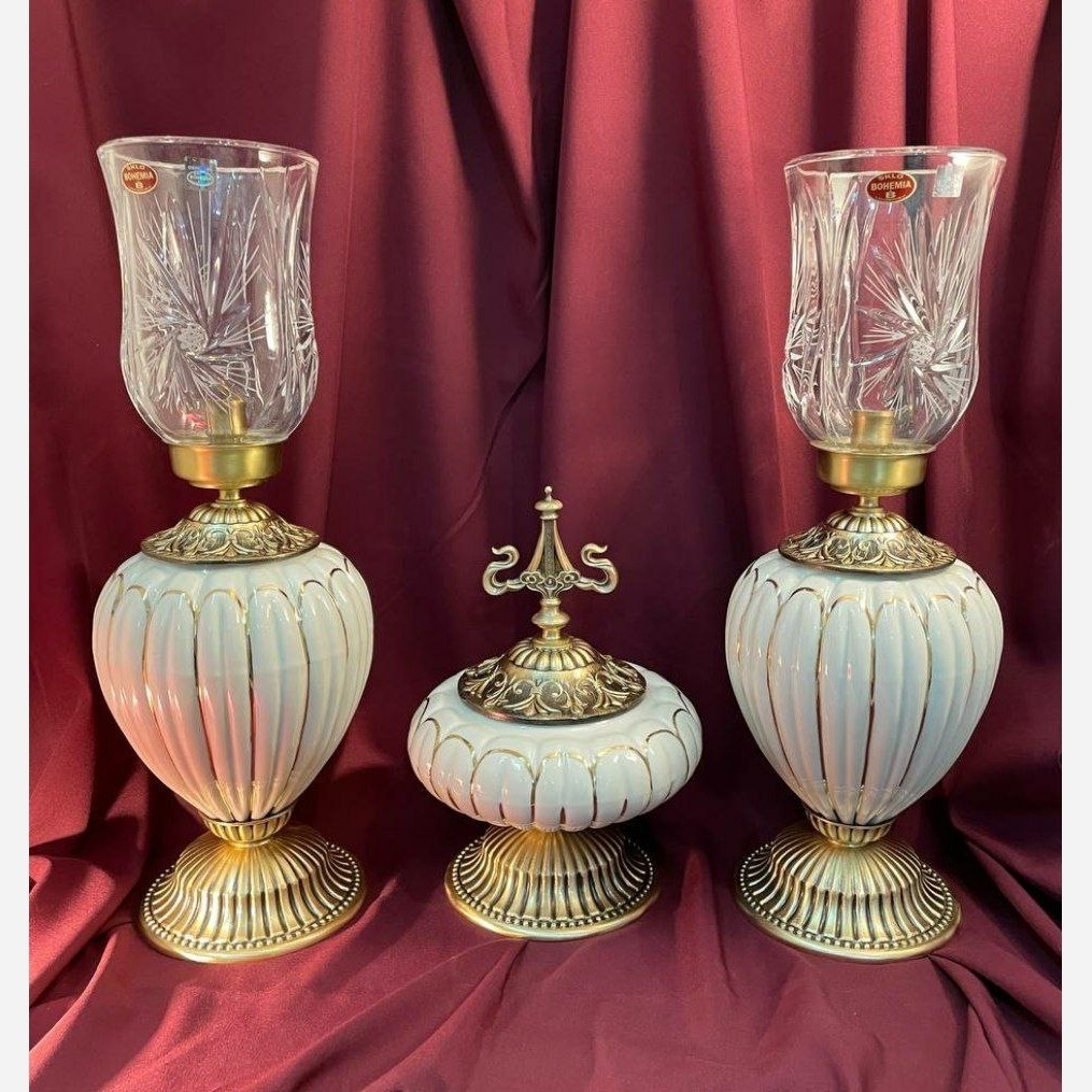شمعدان آباژور لمپا چینی برنز لنتر لاله جار آنتیک برنزی گردسوز شبخواب مبلمونسرا مدل 233425
