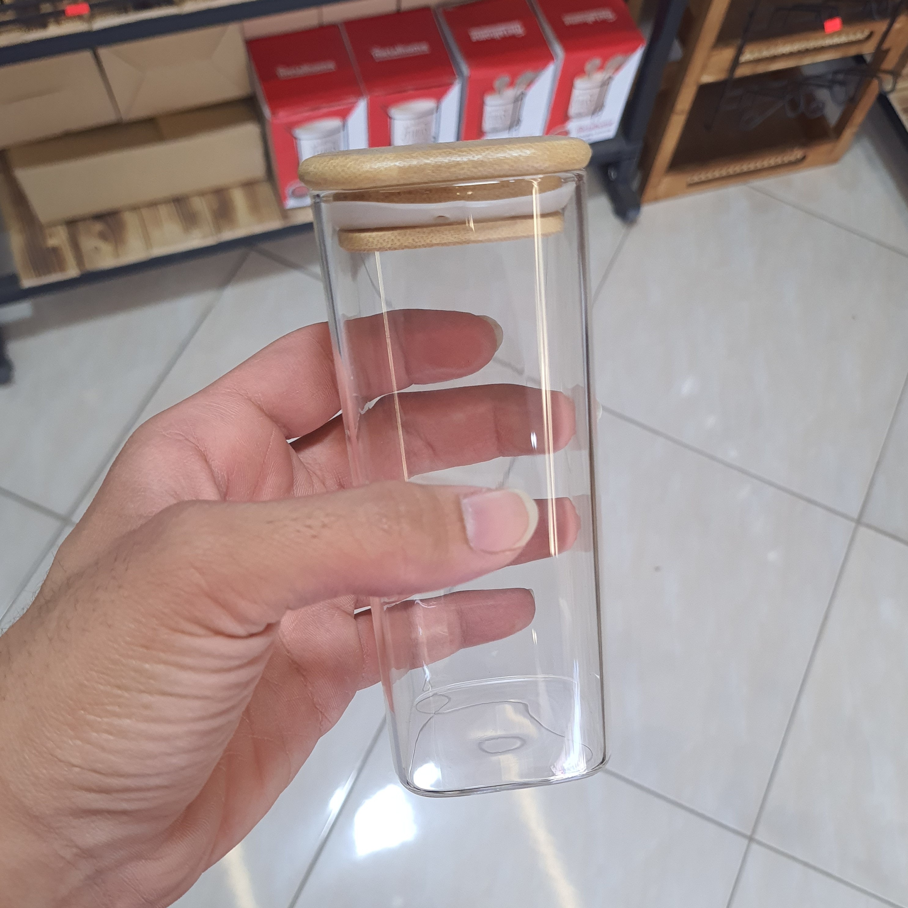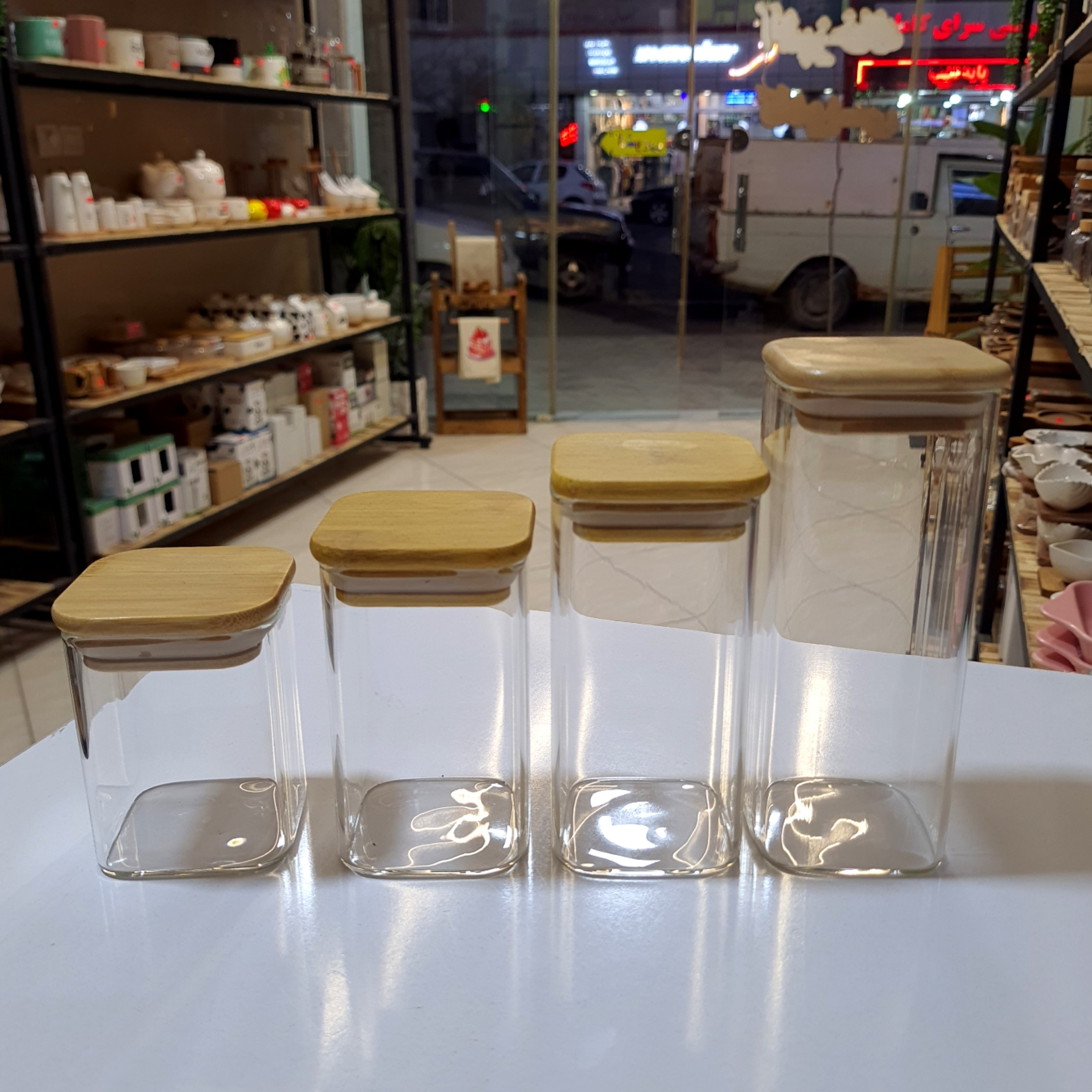 بانکه پیرکس مربع درب بامبو وارداتی دارای واشر بهداشتی که در محکم و سفت میشود کف 6×6 ارتفاع 8_10_12_15