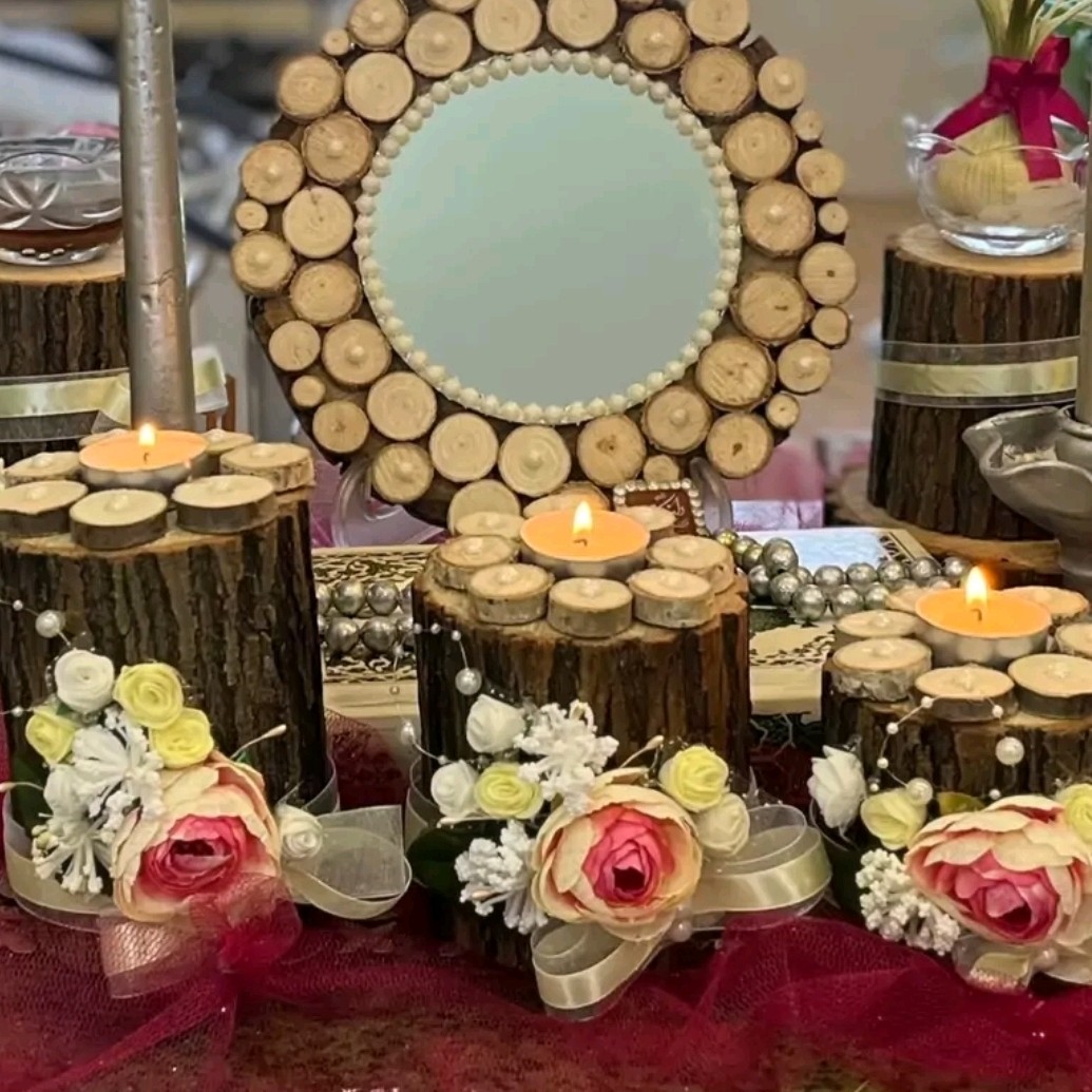 سه عدد جا شمعی چوبی با تزینات کامل قیمت 300