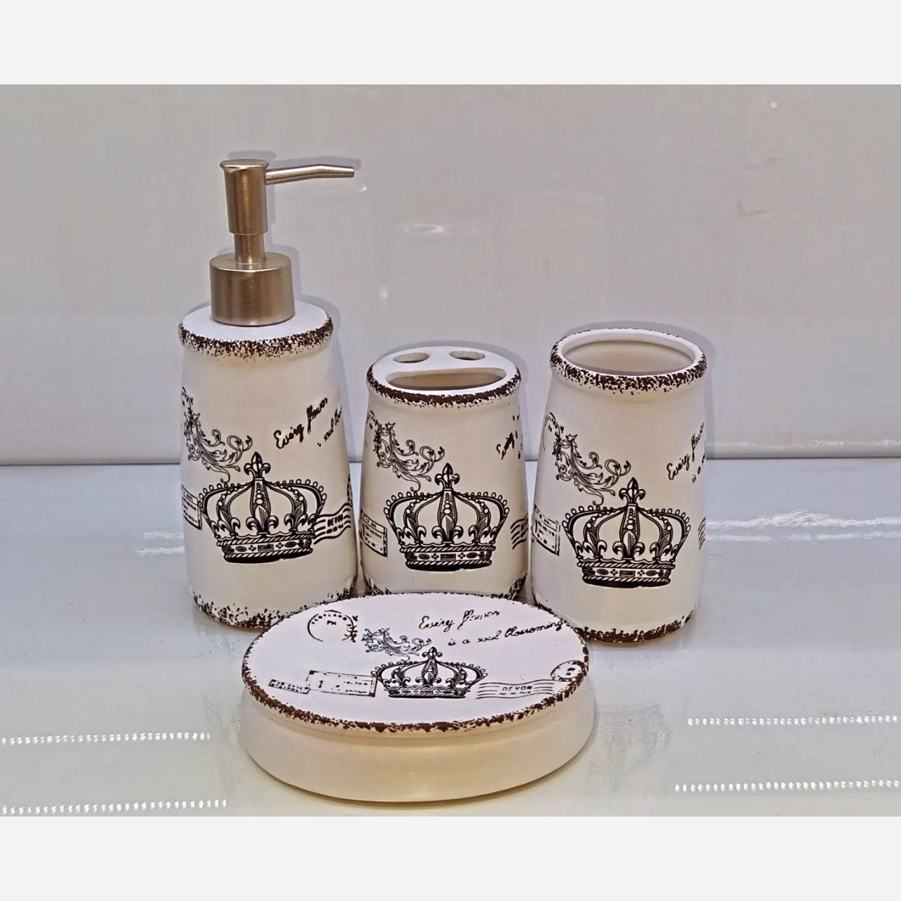 این محصول دارای یک عدد جا مایع و یک عدد جا صابونی و یک عدد لیوان و یک عدد جا مسواکی میباشد