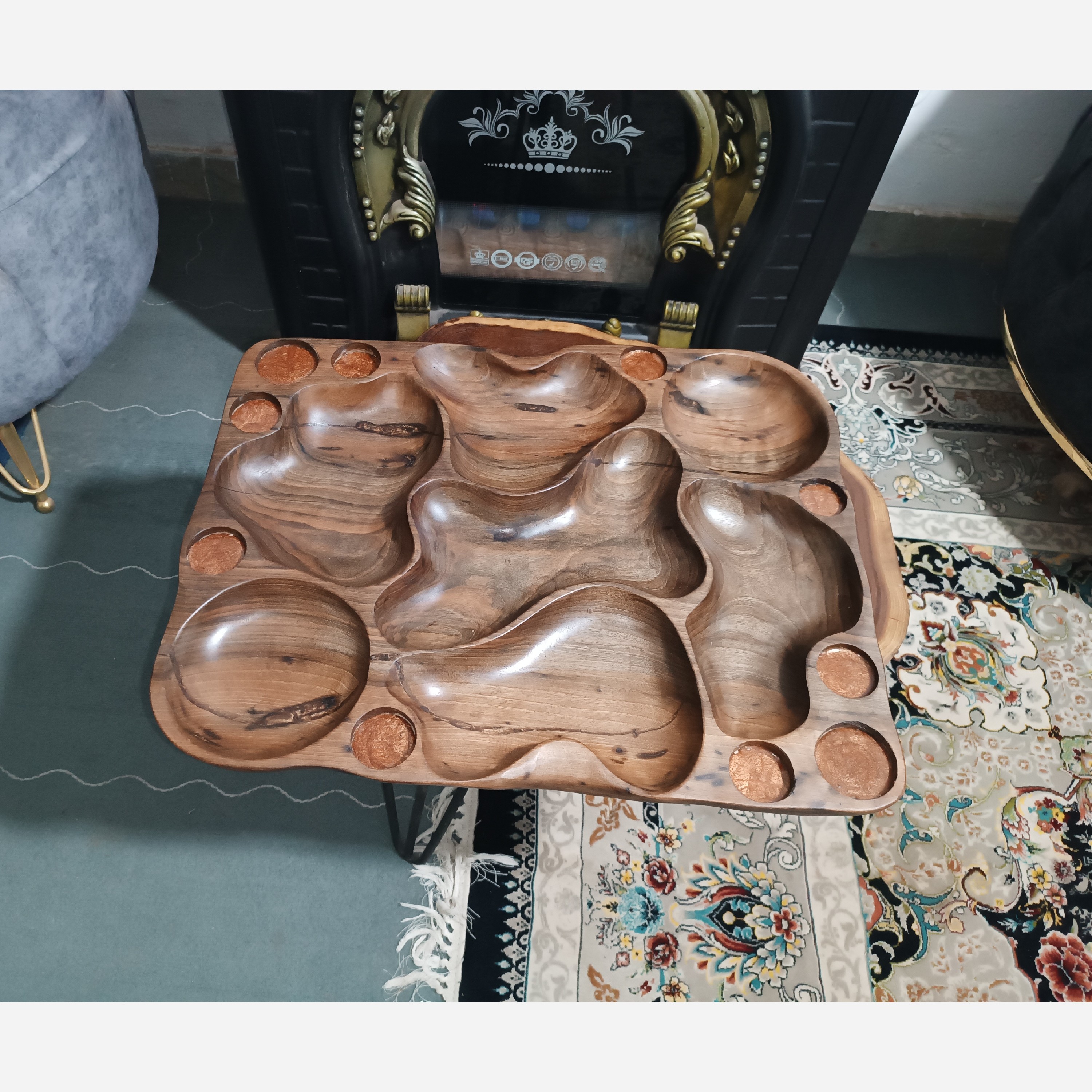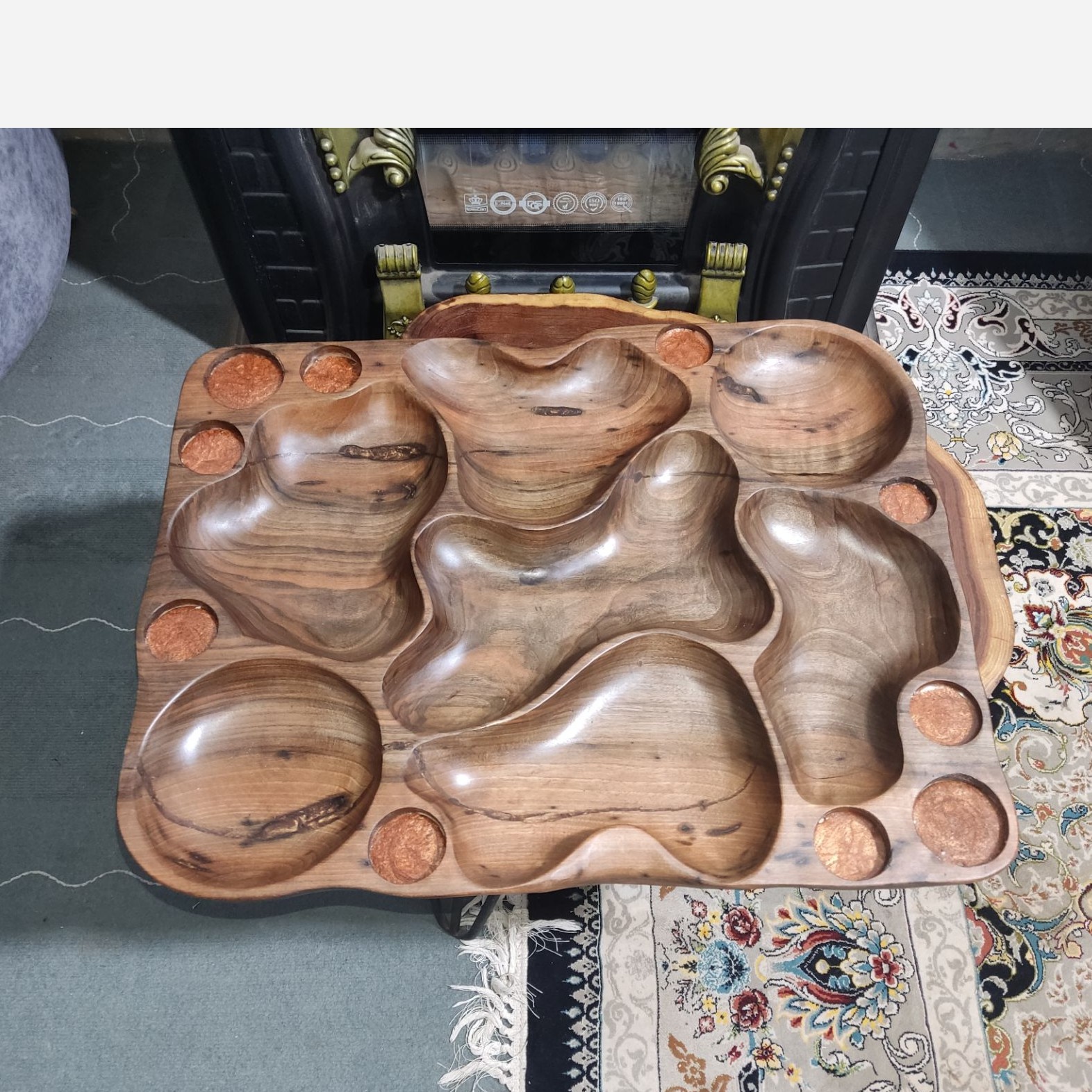 ظروف چوبی از جنس گردو،قبل از سفارش اطلاع از وضعیت کالا را جویا شوید🙏قابلیت اجرا این طرح بروروی چوب تیره گردو و روشن چوب سنجد امکان پذیر میباشدقابلیت سایز بندی و ست کامل ازین طرح .اجرا برای هفت سینوجود درز یا شکاف در چوب طبیعی میباشد اما ما این مشکل را با رزین و بتونه حل کرده ایم و از جهت وجود رزین کامل و تضمینی میباشد و کار کاملا مستحکم میشود