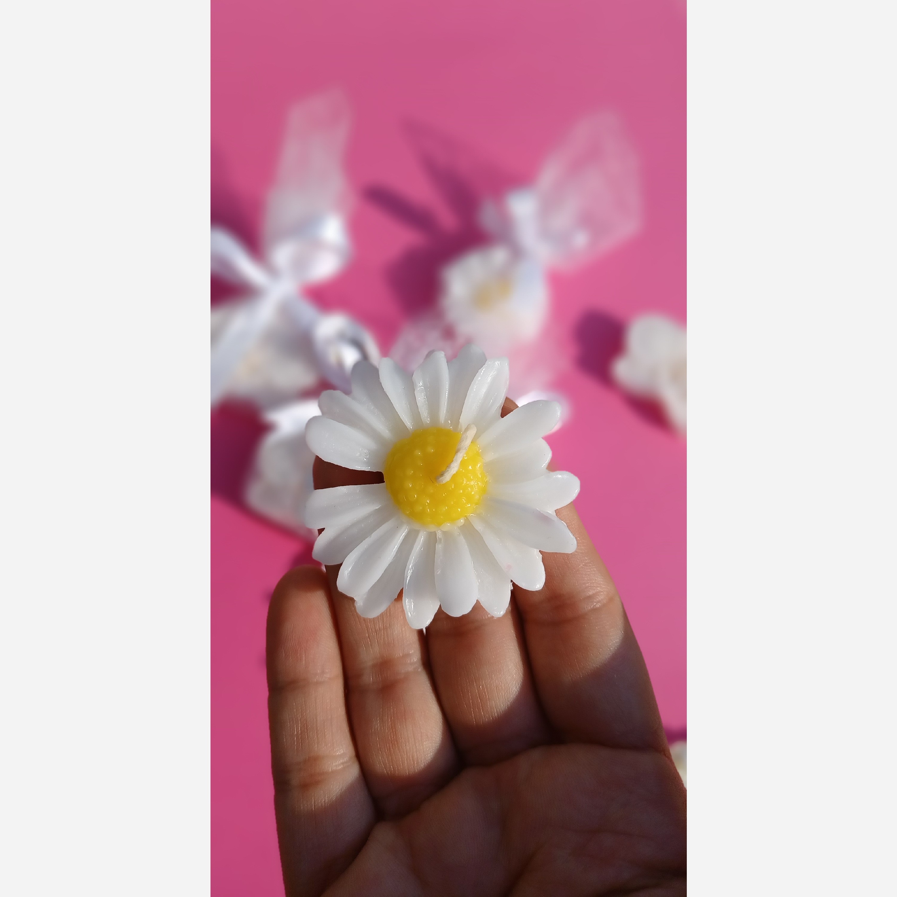 گیفت شمع بابونه با تزیین تور و روبان مبلمونسرا مدل 281629