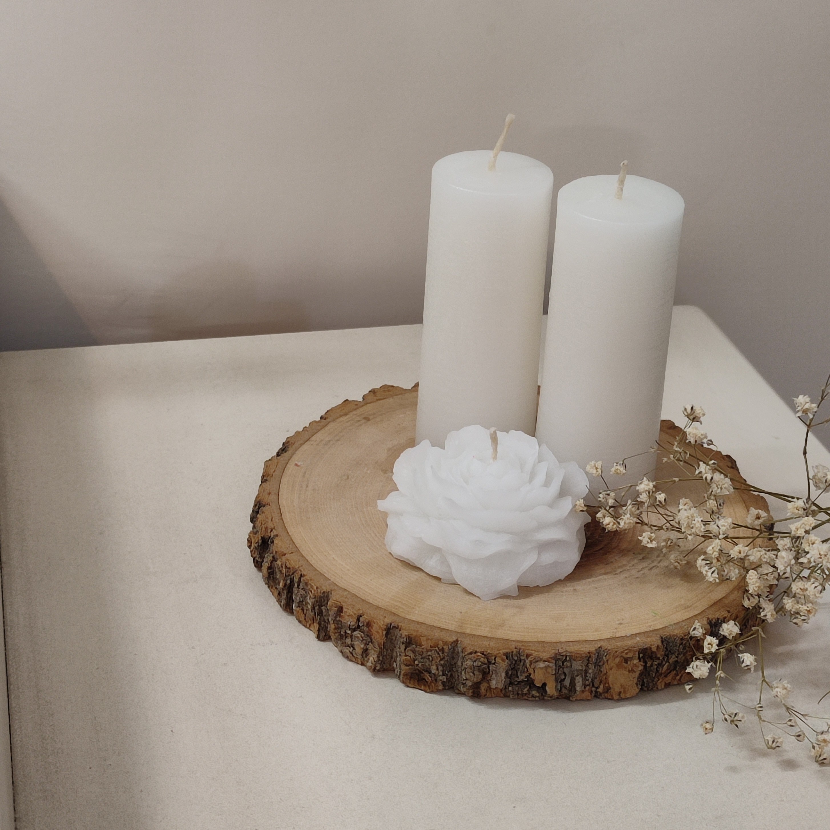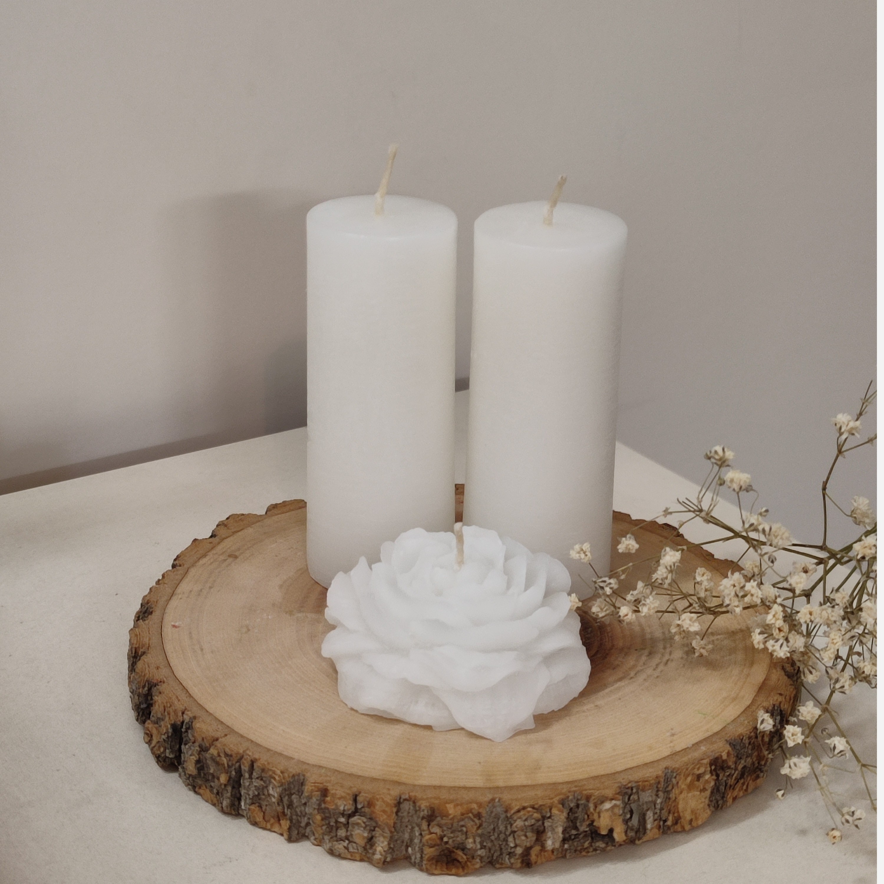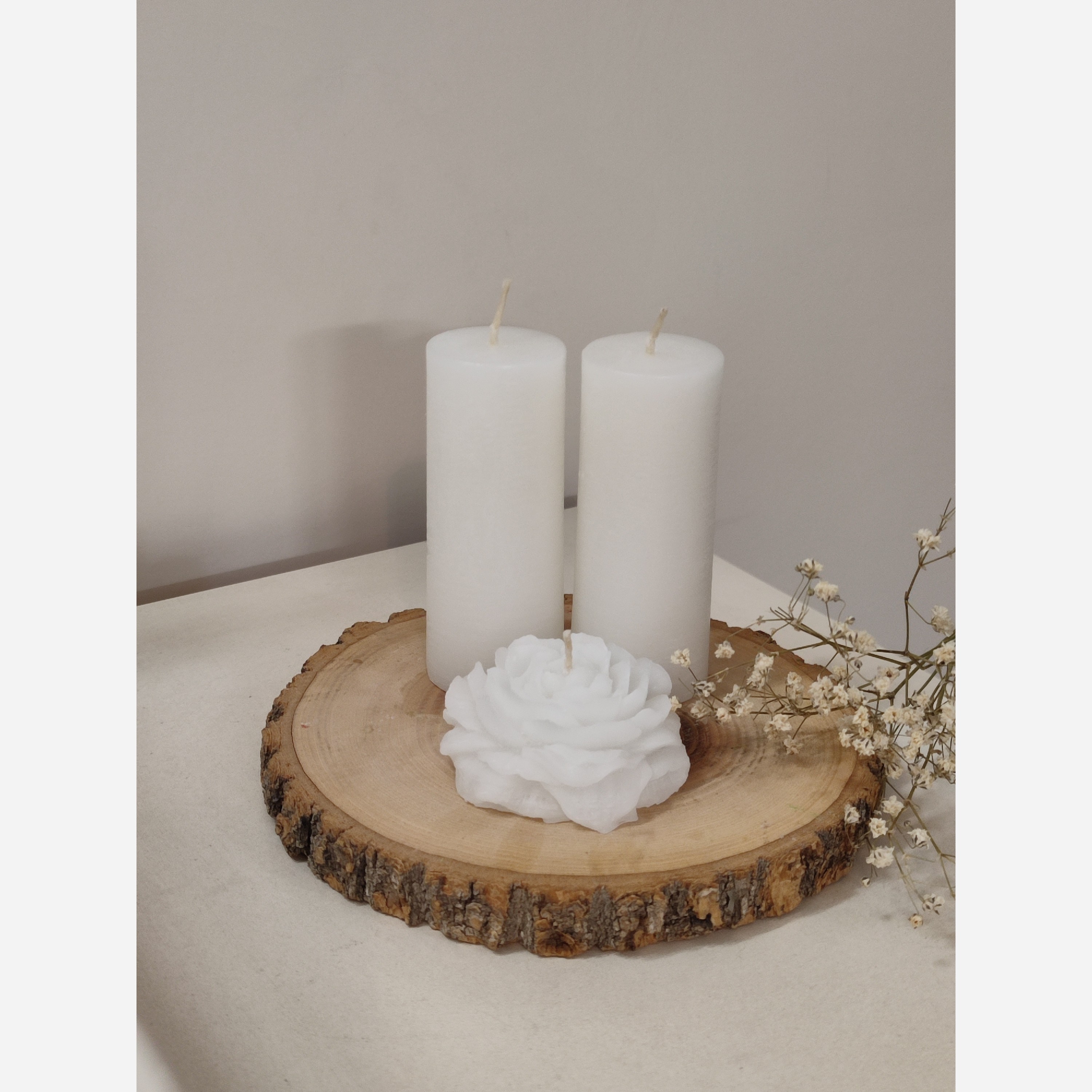 شمع استوانه وگل آلاله سه عددی سفید مبلمونسرا مدل 286596